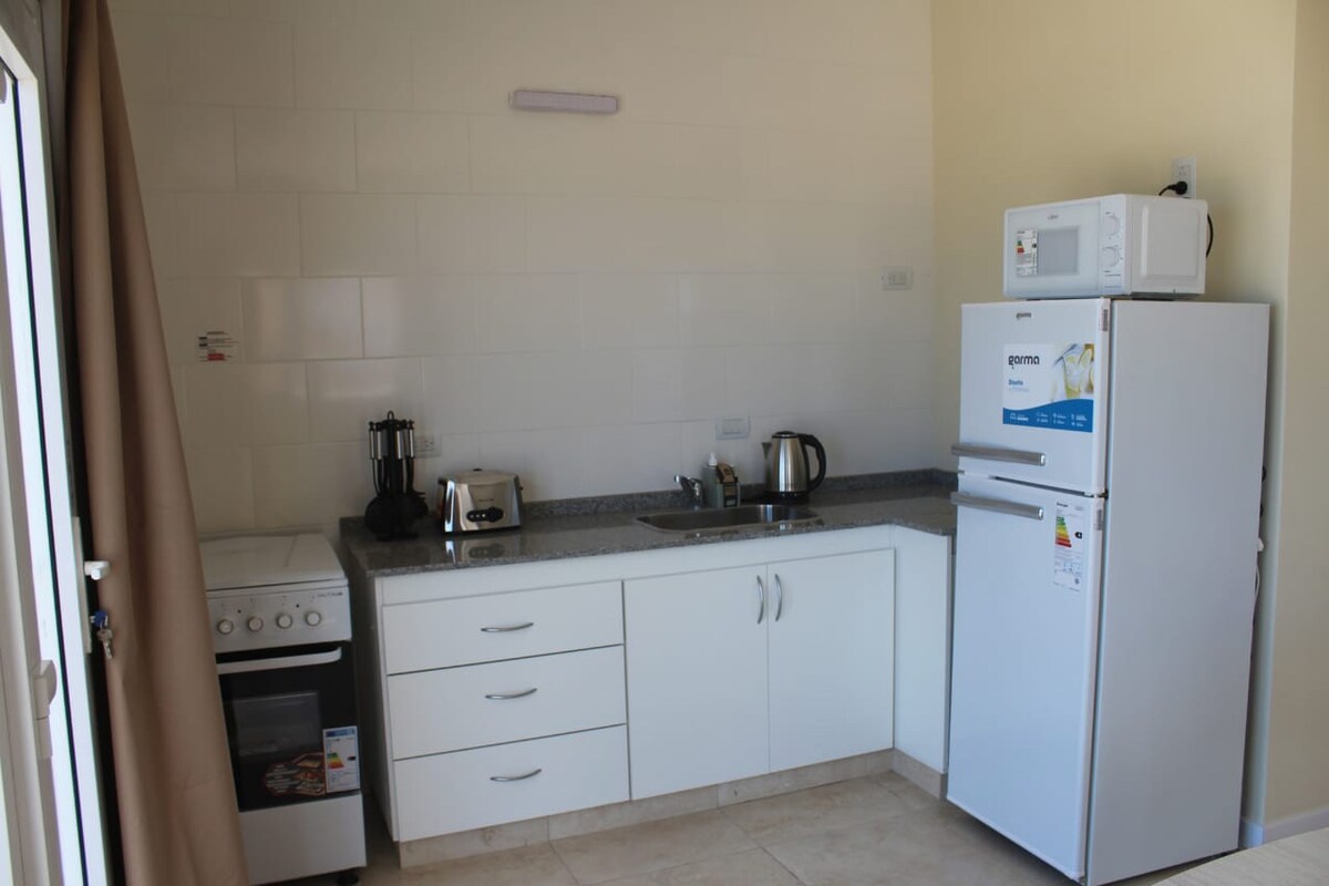 Iniimbitahan ka naming mamalagi sa Salado Winds Mayroon kaming mga apartment at duplex para sa 2 tao, 4 at 6 na tao! Isang kuwartong apartment na inihanda para sa 2 tao. Queen-size na higaan. Mga sapin sa higaan. Wi‑Fi. DirecTV. Balkonang may duyan na pinaghahatian. Matatagpuan 400 metro mula sa dagat. Mayroon kaming pahintulot mula sa kalihim ng turismo ng Sierra Grande. Tumatanggap kami ng mga debit at credit card!