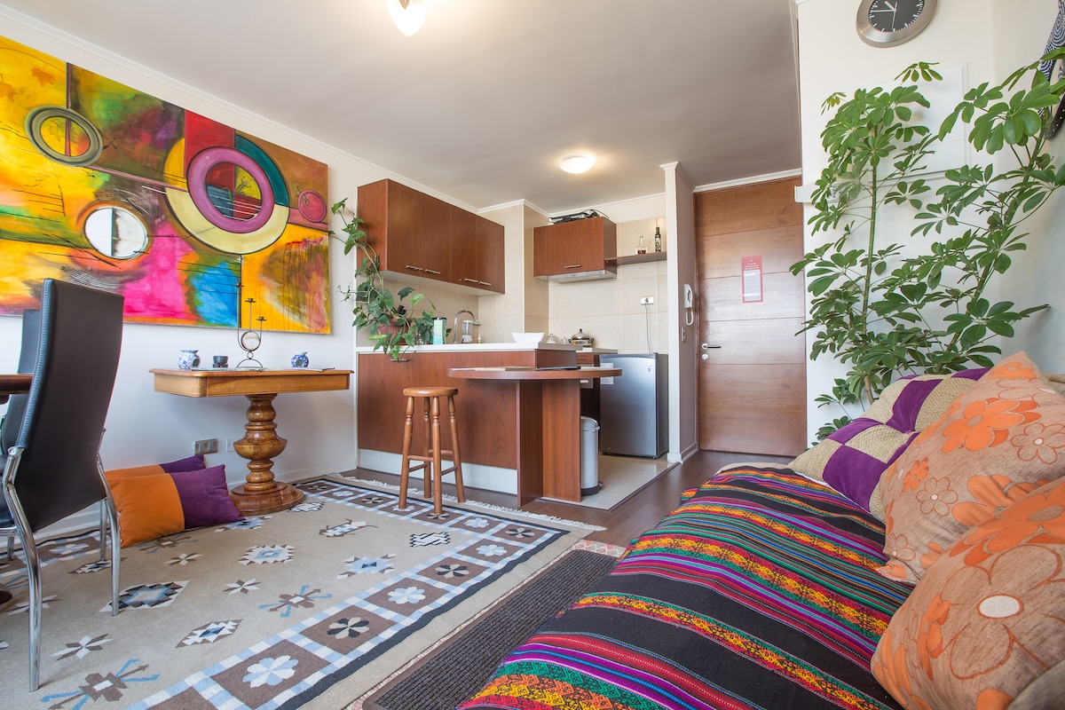 Mag - enjoy sa magandang karanasan sa sentrong lokasyong ito. Moderno at maaliwalas na apartment na may magandang lokasyon, sa gourmet at bohemian heart ng Santiago de Chile na "Barrio Lastarria". Ang kapitbahayan ay isang mahiwagang halo ng kasaysayan, kultura, pagkakaiba - iba, at tradisyon. Ito ay nailalarawan sa pamamagitan ng mahusay na halaga ng arkitektura at ang kaakit - akit at iba 't ibang kultural, gastronomiko, at libangan na alok. (mga restawran, cafe, bar, sinehan, museo, mga gallery ng disenyo, atbp).