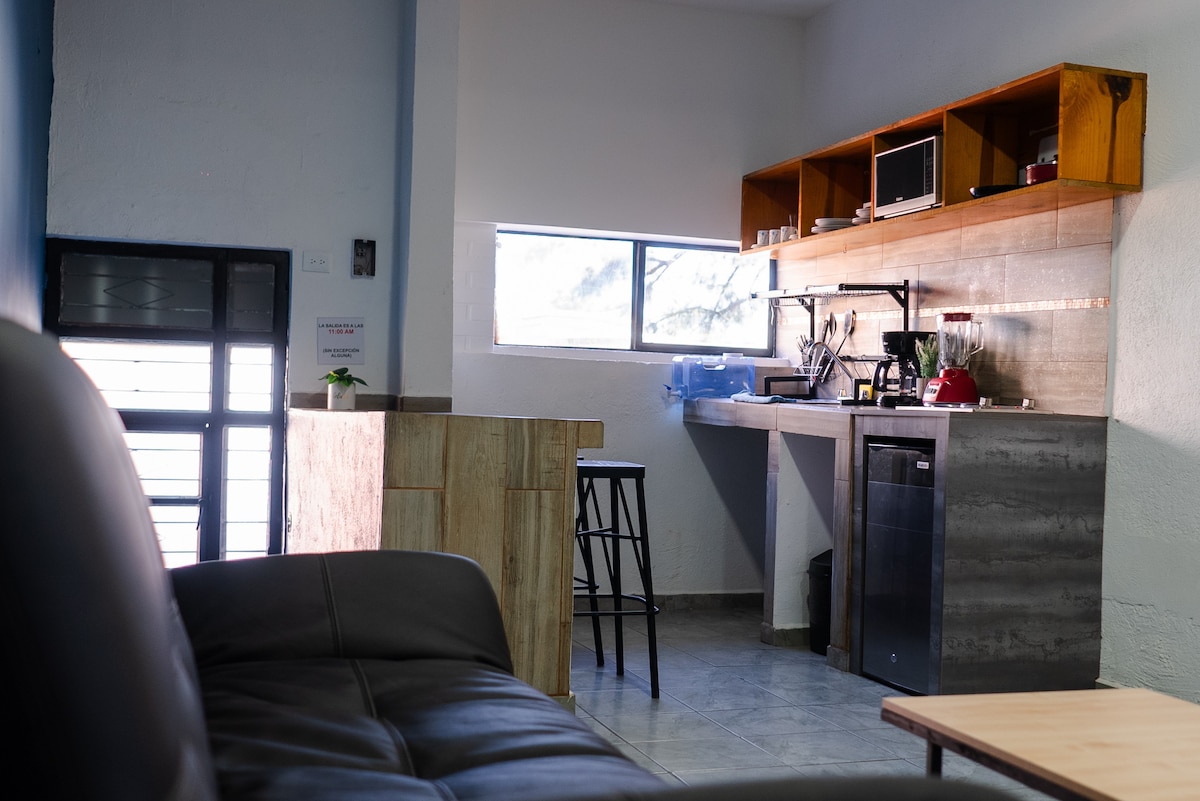 Perfect for long stays or remote work. Cozy and functional apartment in the heart of the city, fully furnished and equipped with all essentials. Located in a safe, quiet area with easy access to main roads, shops, restaurants, and attractions. 📍 Location: 1.4 km (20 min walk) to downtown and the San Marcos Fair. 🚗 Driving distances (min): Downtown 8 • Fair 7 • Isla San Marcos 8 • Bus Station 7 • Airport 28 Book now and enjoy a great stay!