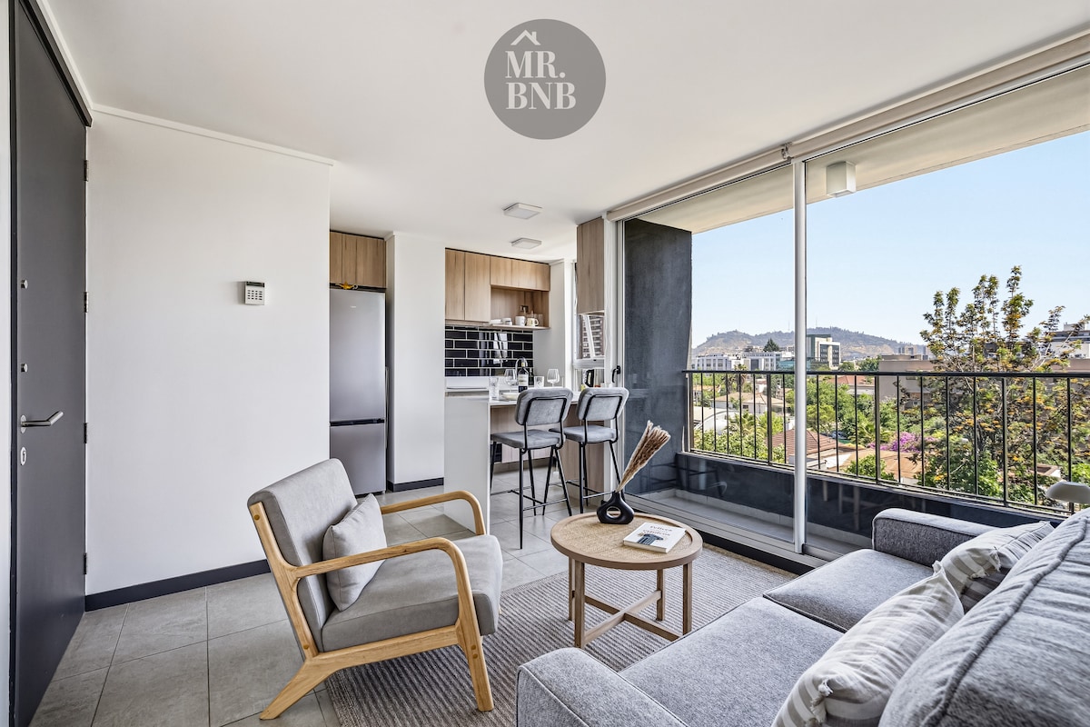 Masiyahan sa moderno, maliwanag at maingat na pinalamutian na apartment. Kumpleto ang kagamitan para sa mga komportableng tuluyan, mayroon itong double bed, sofa bed, integrated kitchen, Smart TV, WiFi at balkonahe na may malinaw na tanawin. Matatagpuan sa ligtas at konektadong lugar ng Santiago, mainam para sa pagpapahinga o pagtatrabaho. Isang mainit at functional na lugar na may pansin sa bawat detalye para maging komportable ka. Magandang lokasyon: malapit sa Plaza Ñuñoa at Mall Portal Ñuñoa, mga sports center. Gamit ang mahusay na transportasyon.