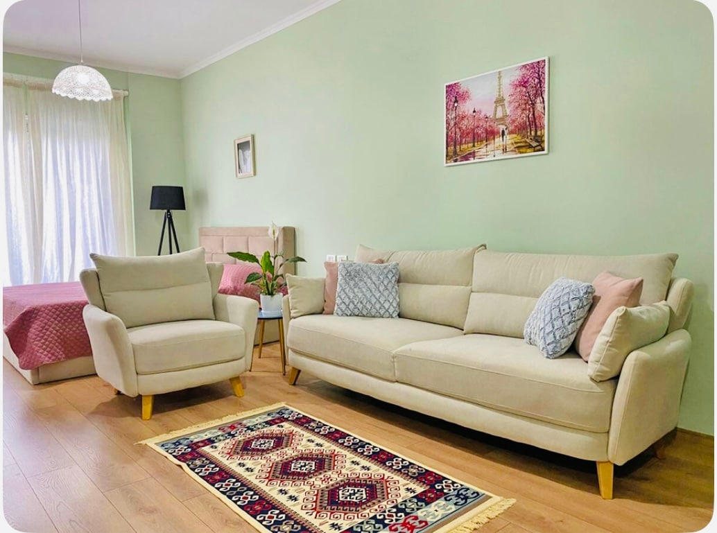 Magandang bagong itinayo, 2 minuto mula sa dagat, kung saan matatanaw ang pangalawang kalsada kaya malayo ka sa noice ng trapiko at polusyon. Masisiyahan ka sa almusal sa ilalim ng araw sa balkonahe! May sala, kusinang kumpleto sa kagamitan, silid - tulugan na may king size bed (+ folding bed), desk, at mabilis na Wi - Fi. May mga bar, restaurant, at supermarket na literal na nasa tabi ng gusali. Puwede kang maglakad nang matagal sa tabing - dagat o magbisikleta sa buong lungsod. 50 minutong biyahe mula sa Dhermi. Magandang koneksyon sa bus papuntang Tirana at Saranda
