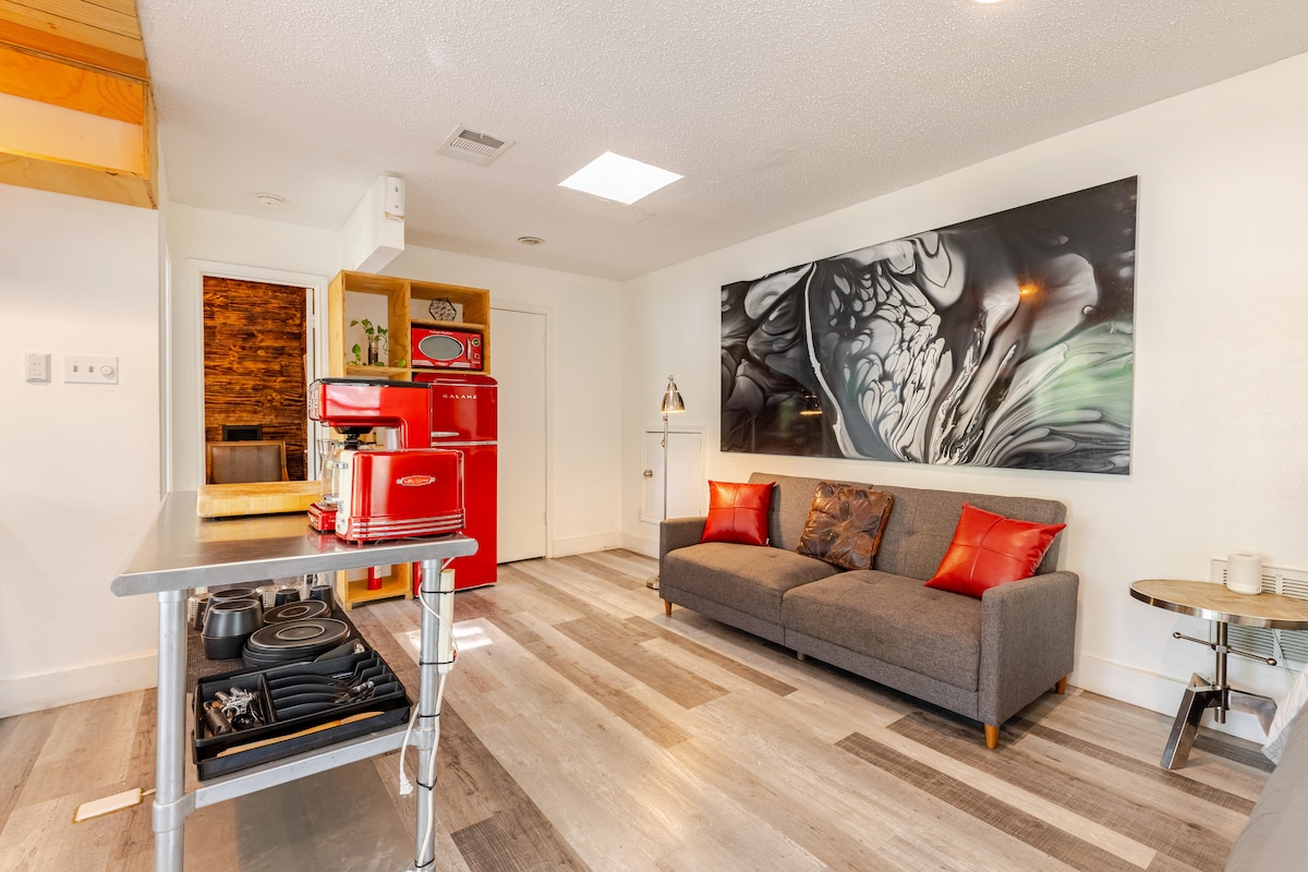 I - explore ang Austin mula sa kamangha - manghang munting tuluyan na ito sa gitna mismo ng naka - istilong East Side! Makaranas ng munting pamumuhay na may lahat ng kailangan mo para sa komportableng pamamalagi. Maglakad papunta sa mga taco, cocktail, o pag - aayos ng kape sa umaga. Kung ikaw man ay city - hopping o sinusubukan ang maliit na pamumuhay, ang naka - istilong maliit na lugar na ito ay ang perpektong launch pad. – Maliit na kusina (refrigerator, kalan, microwave) – Queen lofted bed – Smart TV at desk – Libreng paradahan sa labas ng kalye – 5 minuto lang papunta sa downtown at Moody Center