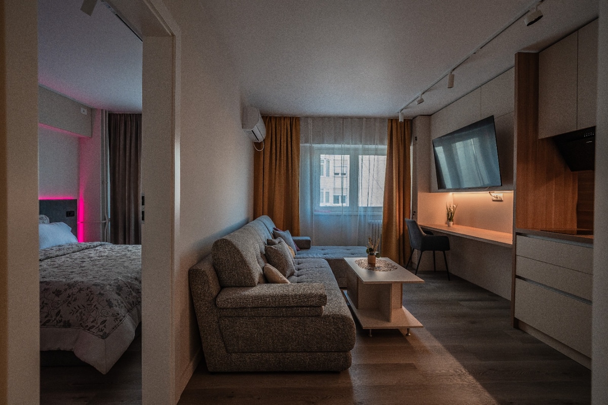 Matatagpuan ang aming moderno at komportableng studio sa Sentro ng Lungsod ng Ploiesti. Mainam para sa nakakarelaks at di - malilimutang pamamalagi, nag - aalok ito sa iyo ng lahat ng pasilidad na kailangan mo para maramdaman mong komportable ka. Mayroon itong lawak na 32 metro kuwadrado at binubuo ito ng: Kuwarto na may queen size na higaan at sofa bed Kusina Banyo Hall Balkonahe Paninigarilyo lang sa balkonahe! Malugod kang tinatanggap!