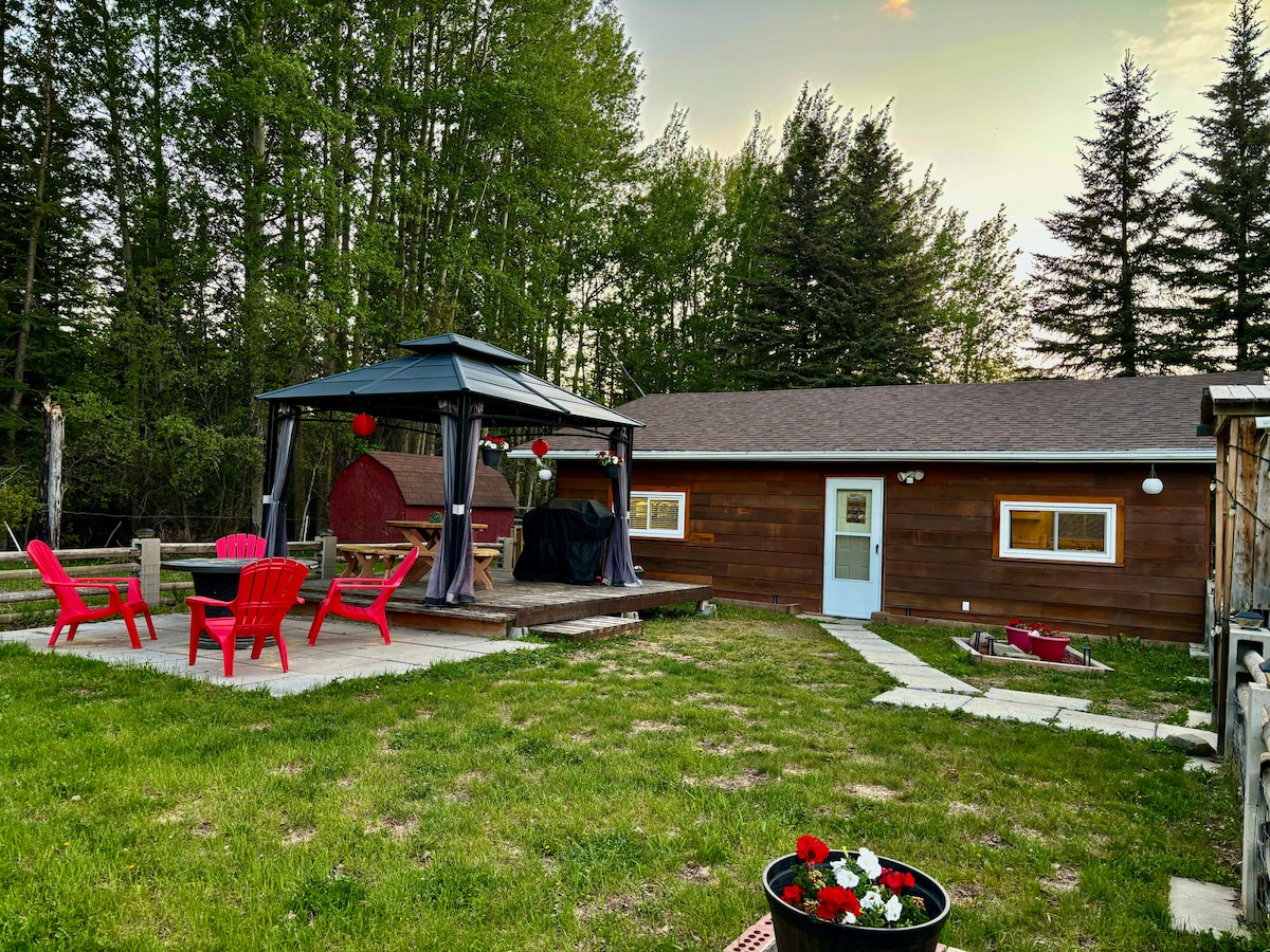 ESCAPE sa Folding Mountain Village! Matatagpuan sa silangang mga slope ng Canadian Rockies, 15 minutong biyahe kami sa kanluran ng Hinton at 5 minutong biyahe papunta sa East gates ng Jasper National Park. Isang ganap na nakapaloob na buong suite na angkop para sa 4 -8 bisita, na may 3 silid - tulugan at 1.5 banyo at magandang patyo! Maginhawang matatagpuan sa maigsing distansya papunta sa isa sa mga nangungunang craft brewery ng Alberta, Folding Mountain Brewery. 10min ride din kami mula sa Brule sand dunes (mga taong mahilig sa ATV)!