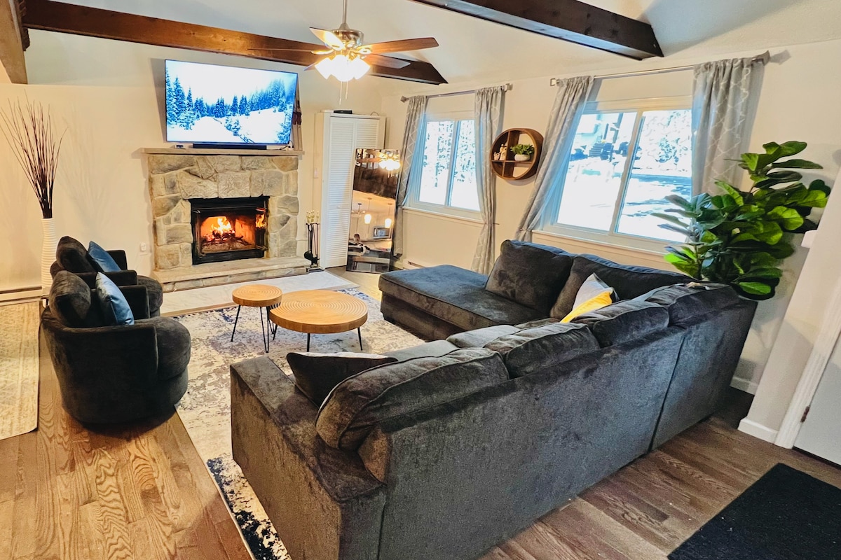 This 3,300 sq. ft. modern mountain getaway is built for fun, relaxation, and togetherness! Sleeps 12 with 4 bdr + GUESTt room 9 comfy beds. Unwind in the master bath or gather in the game rooms with poker, pool, and arcade favorites. Enjoy 8 large TVs, a 6-person hot tub, BBQ grill, cozy fire pit with seating, and even outdoor chess. Perfect for families and groups looking to combine luxury comforts with endless entertainment. -Luxury -Grill -Arcade Games -Poker Table -Pool Table -Foosball