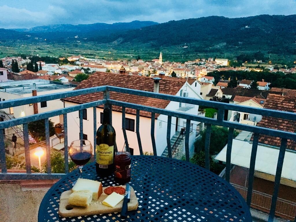 Huwag nang lumayo pa, ito ang pinakanatatanging top floor penthouse sa Hvar, Croatia! Ang napakalaking 150 m2 apartment na ito ay binubuo ng 40m2 terrace na tinatanaw ang lumang bayan ng Hvar, Adriatic sea at Pakleni islands, na may 3 silid - tulugan, 2 buong banyo, malaking living room na may dining area at kusinang kumpleto sa kagamitan. Mamuhay na parang Hari o Reyna!