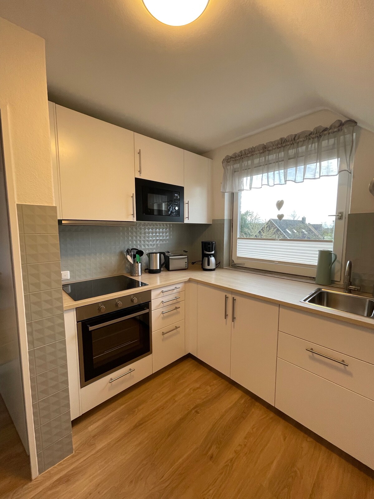 Ang aming maliit at magandang apartment sa ikalawang palapag ay angkop para sa dalawang tao. Dahil sa pent roof, mayroon itong magandang taas ng kuwarto at maliwanag at magiliw. Sa sala, mayroon kang malaking TV at komportableng sofa. Mayroon ding maliit at kumpletong sulok sa kusina na may 2 plato na ceramic hob at refrigerator. May paradahan sa tabi mismo ng bahay. Distansya mula sa Ratzeburg 3 km May ibang gumagamit ng hagdan dahil nasa ikalawang palapag ang opisina namin.