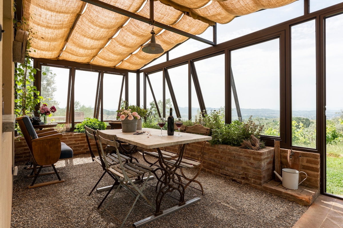 Nakakabighaning Bakasyunan para sa Dalawa, 15 Minuto mula sa Vinci Magbakasyon sa komportableng matutuluyan na perpekto para sa mga mag‑asawang gustong magrelaks at magpahinga. Mag‑enjoy sa pribadong hardin at shared na travertine pool na may magagandang tanawin ng kabukiran ng Tuscany—lalo na sa paglubog ng araw. Tamang-tama para sa mga romantikong pamamalagi nang isang linggo. Nakatira kami sa property at magiging maingat at masaya kaming tumulong kung kinakailangan. Kailangan ng kotse para makarating sa bahay.