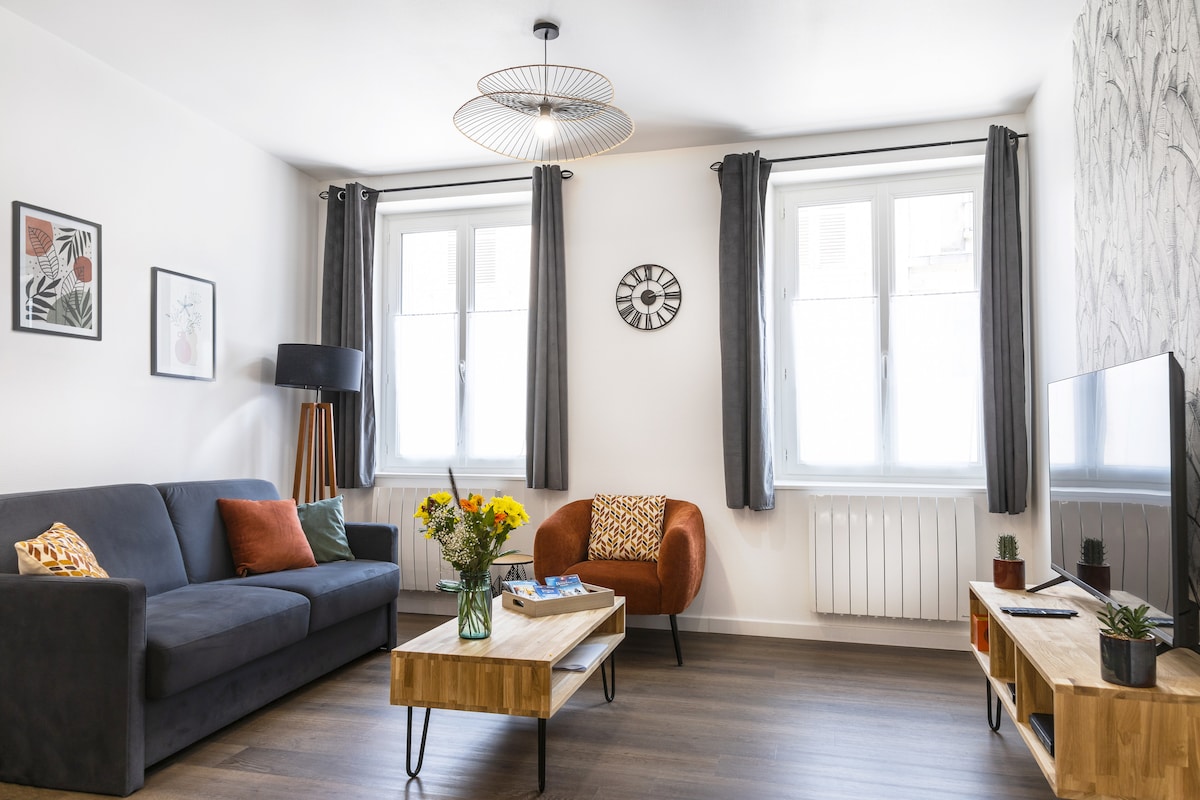 May perpektong kinalalagyan 5 minutong lakad mula sa istasyon ng tren ng SNCF ng Sens at 10 minutong lakad mula sa sentro ng lungsod, ang apartment na ito na inayos at kumpleto sa kagamitan, ay magdadala sa iyo ng kaginhawaan at katahimikan. Tamang - tama para sa dalawang tao ,ang mapapalitan na sofa ay maaaring tumanggap ng hanggang dalawang karagdagang tao.Located sa mga bangko ng Yonne ,ang balkonahe ay may dining area, isang relaxation area at isang kahanga - hangang tanawin ng Saint - Etienne Cathedral at ang sentro ng lungsod. Isang tunay na maliit na cocoon na naghihintay para lang sa iyo!