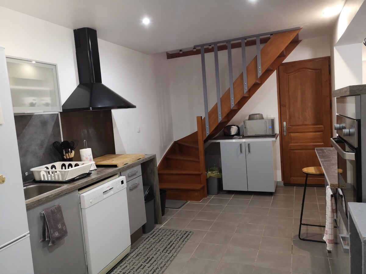 Ang kaakit - akit na half - timbered na bahay na 60 mÂČ na matatagpuan sa kanayunan. Magandang lugar para i - recharge ang iyong mga baterya sa tahimik at berde Dekorasyon sa kanayunan at mga kumpletong amenidad Ginagawa ang mga higaan sa iyong pagdating Posibleng sariling pag - check in Mga tindahan at restawran na mapupuntahan gamit ang kotse Espesyal na idinisenyo para sa mga pamamalaging ilang araw hanggang ilang buwan Bago: Kilala na ngayon ang bahay sa Fiber na nagbibigay - daan sa iyong magtrabaho sa mabuting kondisyon