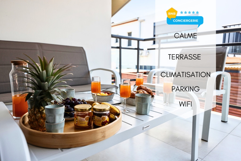 Malaking studio na may kumpletong kagamitan na ilang minutong lakad lang ang layo mula sa sentro ng lungsod at lagoon. Ang sala ay binubuo ng 35 m2 na sala/kusina at 15 m2 mezzanine na silid - tulugan. Nilagyan ang banyo ng Italian shower. Isang covered terrace para kunin ang iyong mga pagkain at magrelaks. Ang apartment ay tahimik at maliwanag sa isang cocooning atmosphere.
