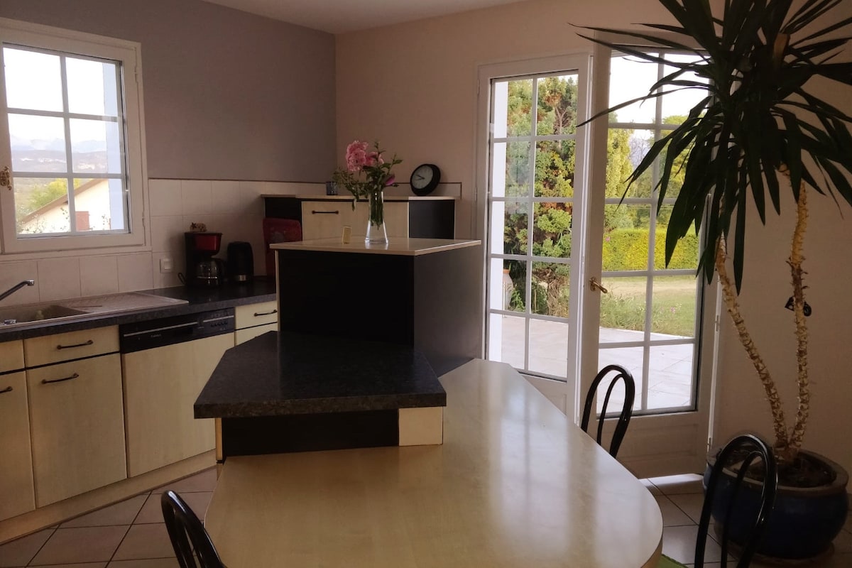 Napakagandang villa na 120 m2 (estilo Île de France) na inuri bilang prestihiyosong villa sa isang lagay ng lupa 5000 m2, nababakuran at kakahuyan. Mayroon itong malaki at magandang terrace na may kiosk, manukan, at maraming parking space (pribadong kalsada). Matatagpuan 15 minuto sa pamamagitan ng kotse mula sa Annecy at malapit sa Gorges du Fier at sa Château de Montrottier. Gamit ang tatlong silid - tulugan pati na rin ang kusinang kumpleto sa kagamitan nito sa sala/silid - kainan ay masisiyahan ka sa isang walang harang na tanawin ng mga bundok.
