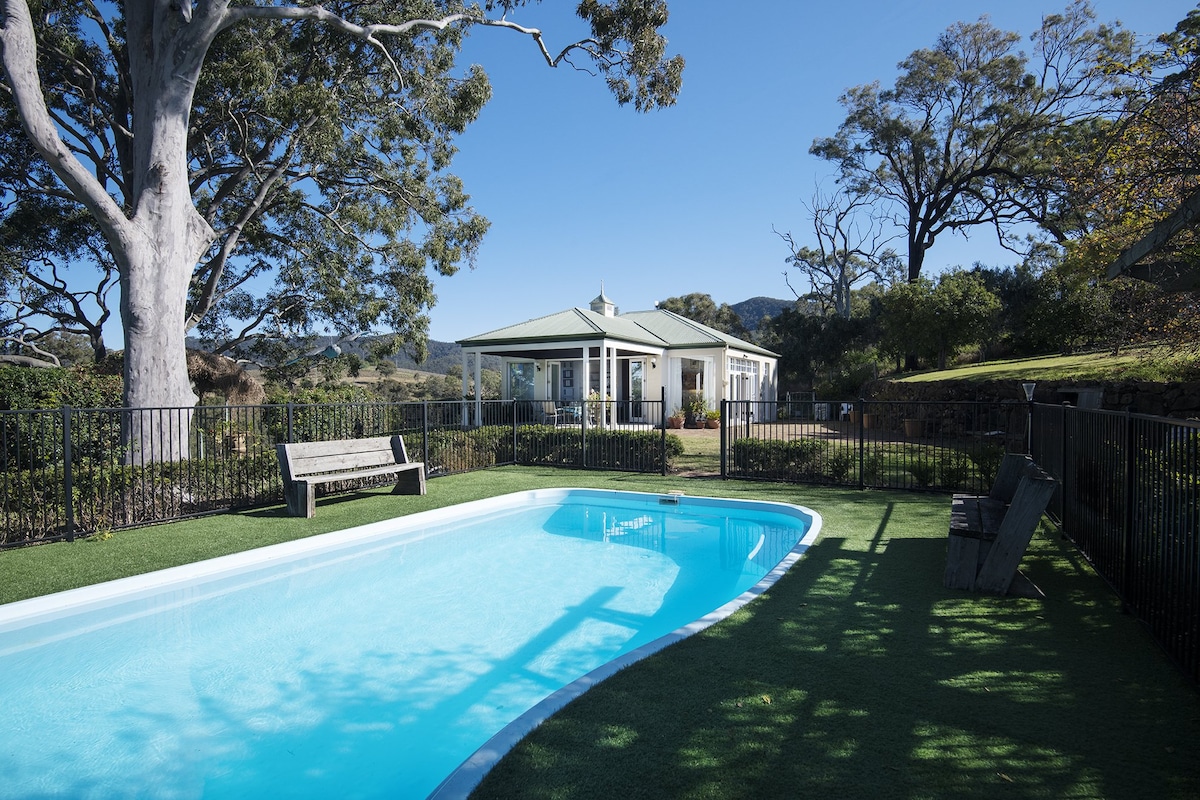 Relax, swim and walk around this beautiful farmstay on 150 acres. panoramic mountain and river views from every window. The Poolhouse has been upgraded with a new Spa and new Fireplace. Pls note there is a friendly Labrador and toy poodle that wander the farm. Pat the friendly horses and dogs Take in the beautiful sunrises W have just upgraded from a Queen bed to a brand new king size for master bedroom Not suitable for Parties suits families with kids