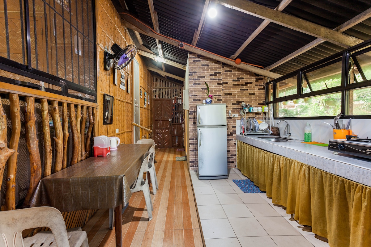 Escape to a spacious, airy bamboo kubo nestled among trees, directly facing the beach. Breathe in the fresh ocean breeze and unwind to the relaxing sound of waves. This large, open retreat is crafted from natural materials and comes fully equipped with complete cooking ware and utensils for your perfect seaside getaway. Unplug and truly unwind.” Enjoy the lovely setting of this romantic spot in nature.