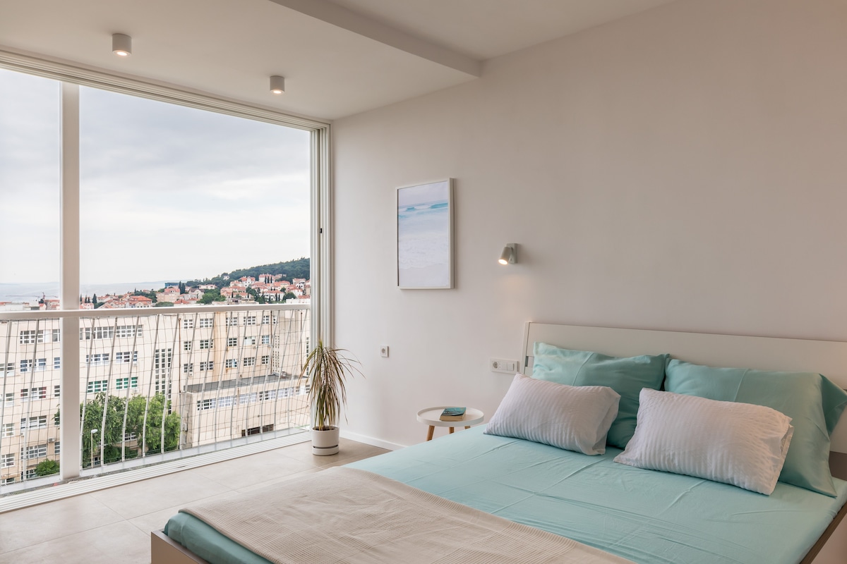 Ganap na bagong inayos na apartment, 10 minutong lakad ang layo mula sa lumang sentro na may pangunahing pampublikong libreng paradahan sa harap lamang ng gusali. Tangkilikin ang isa sa mga pinaka - kamangha - manghang tanawin sa Split, na sumasaklaw sa lahat ng lumang bayan at umaabot hanggang sa pinakamalayong isla ng Croatia.