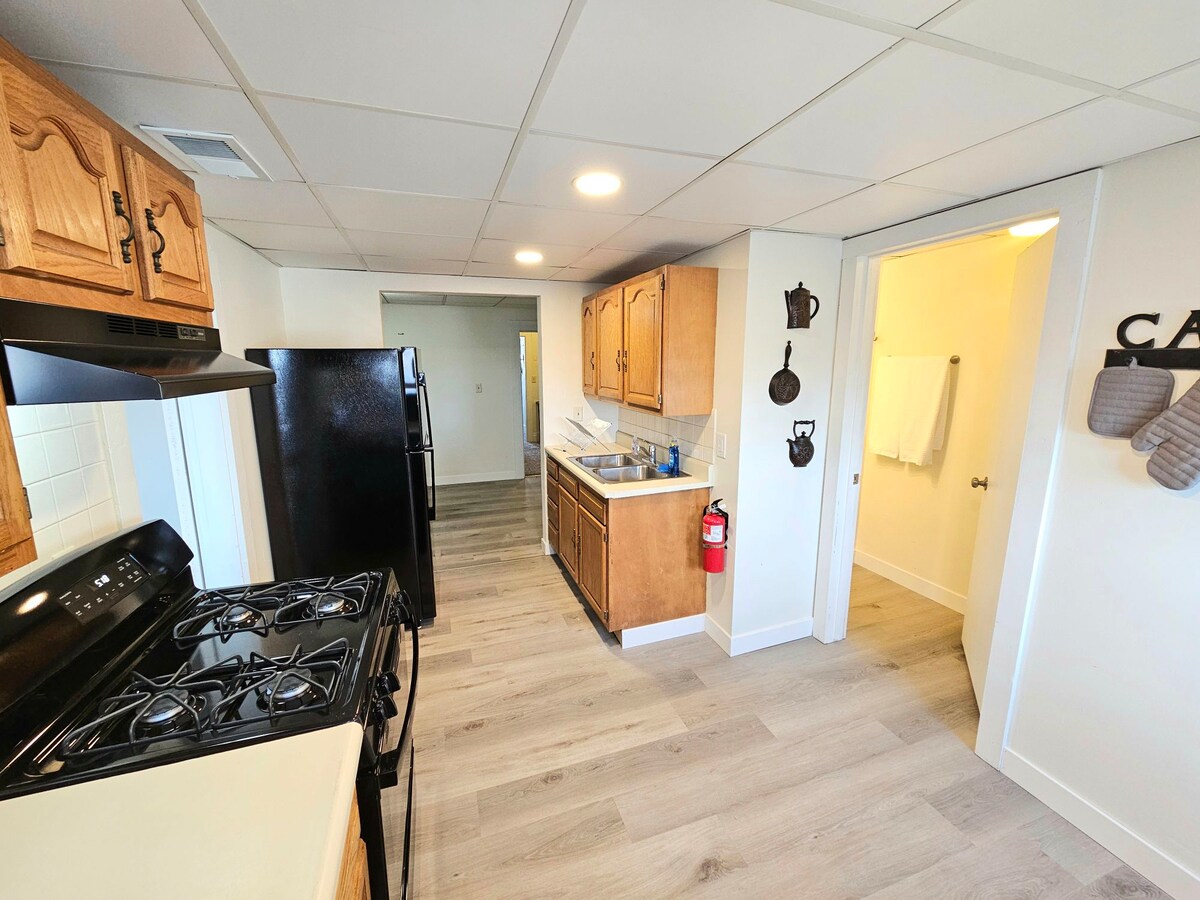 2-bedroom, 1-bathroom pet-friendly townhouse with fenced yard in a quiet neighborhood close to everything. Ideal for couples, yet comfortable for all travelers. Safe, private, and well-suited for remote work. Enjoy an open floor plan and a new patio with a year-round hot tub & seating area. Fully fenced yard with a 6-ft vinyl privacy fence is exclusively yours. No pet restrictions. Includes in-unit laundry and two bedrooms - one set up as an office/workout space. Peaceful and made for unwinding.