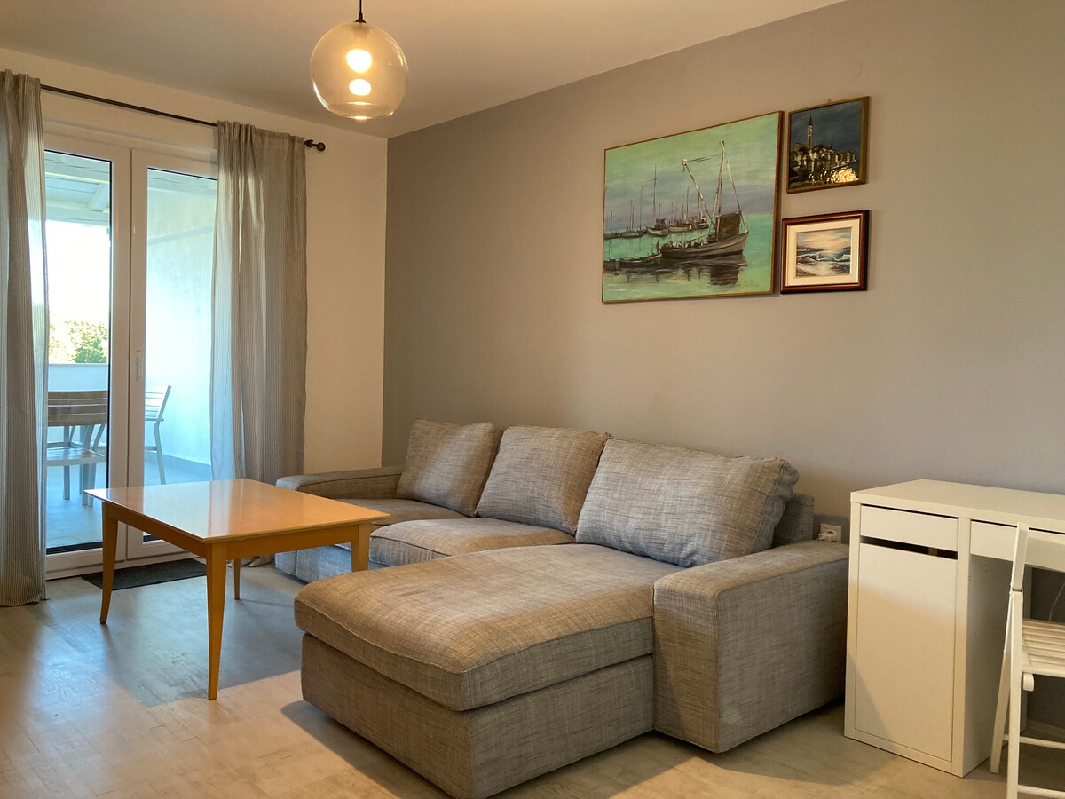 Bagong pinalamutian ang apartment at mayroon ng lahat ng kailangan mo para sa komportable at walang inaalalang pamamalagi sa aming tatlong libong taong gulang na lungsod ng Pula. May libreng paradahan para sa iyong sasakyan. Matatagpuan ang apartment malapit sa sikat na Arena at sampung minutong lakad papunta sa sentro ng lungsod, na may mga makasaysayang at kultural na tanawin mula sa makasaysayang panahon. Gusto mo bang lumayo at magpahinga mula sa pagmamadalian ng lungsod sa loob lamang ng ilang minutong lakad o biyahe, tiyak na pinapayagan ka ng apartment na gawin ito dahil matatagpuan ito sa isang tahimik na lugar ng lungsod. Welcome! :-)