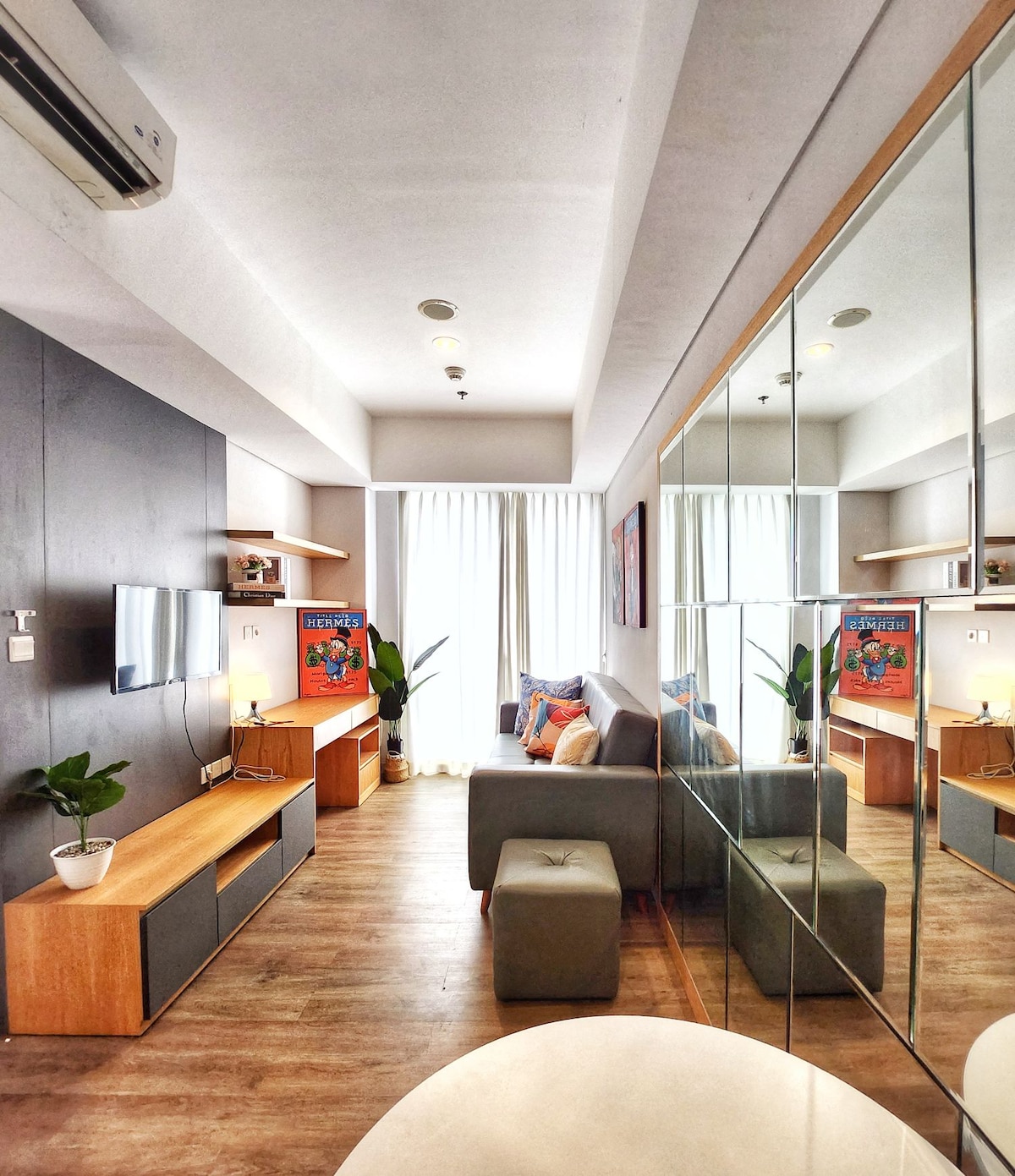 I - enjoy ang iyong pamamalagi @the smith Dkt ikea Dkt alsut mall Dkt livingworld mall kingsize bed 180x200 Sofabed (para sa pagtulog n umupo) smart tv LED (youtube, netflix, wetv, dll) login Ricecooker Dispenser na mainit at malamig Refrigerator kalan setrika Waterheater AC central Handa na ang wifi Alat makan dan masak ready Hairdryer Gordyn Lemari Itinakda ang kusina Meja makan/ kerja Libreng paradahan 2 tuwalya Perlengkapan banyo Libreng paradahan Dagdag na unan Tingnan ang lungsod na maaari mong tingnan mula sa iyong kuwarto infinity pool at gym Buong marmer at parkit mewah