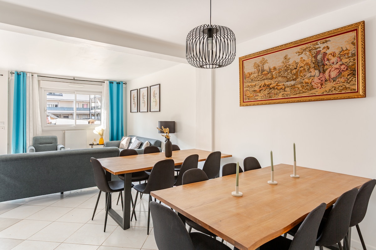 Magrelaks sa maluwag at maliwanag na 150m2 na bahay na 15km lang mula sa Paris. Perpekto ito para sa bakasyon o weekend kasama ang pamilya o mga kaibigan dahil sa malawak na sala, malalaking bintana, kumpletong kusina, at hardin. Ipinagbabawal ang mga party. 📍 Groslay (Val‑d'Oise), 30 min mula sa sentro ng Paris Istasyon ng tren sa Groslay 🚉 12 min. lakad, 15 min. papunta sa Paris Roissy-CDG ✈️ 25 min ang layo ng airport 🌊 5 km mula sa lawa at casino ng Enghien‑les‑Bains