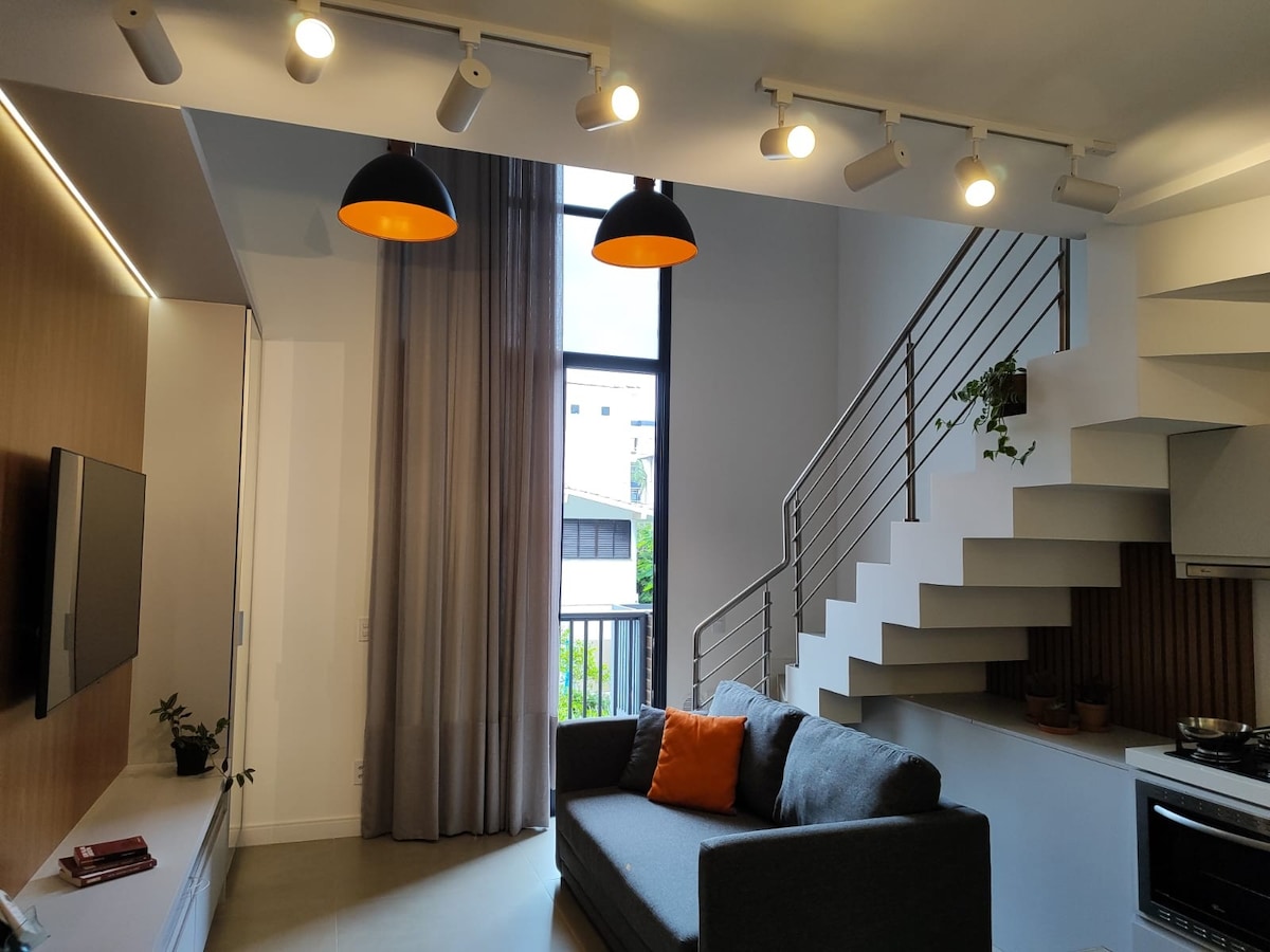 Bago at pinalamutian na studio, 50 metro lang ang layo mula sa tahimik na beach ng Jurerê Tradicional at malapit sa kaakit - akit na Canajurê. Mainam para sa mga naghahanap ng katahimikan at, sa parehong oras, gustong maging malapit sa kaguluhan ng Jurerê Internacional. Family condominium, ligtas at napapalibutan ng kalikasan — kung saan nagigising ka sa ingay ng mga ibon at tinatapos ang araw na tinatangkilik ang paglubog ng araw sa buhangin. Compact at komportableng tuluyan na may eksklusibong paradahan.