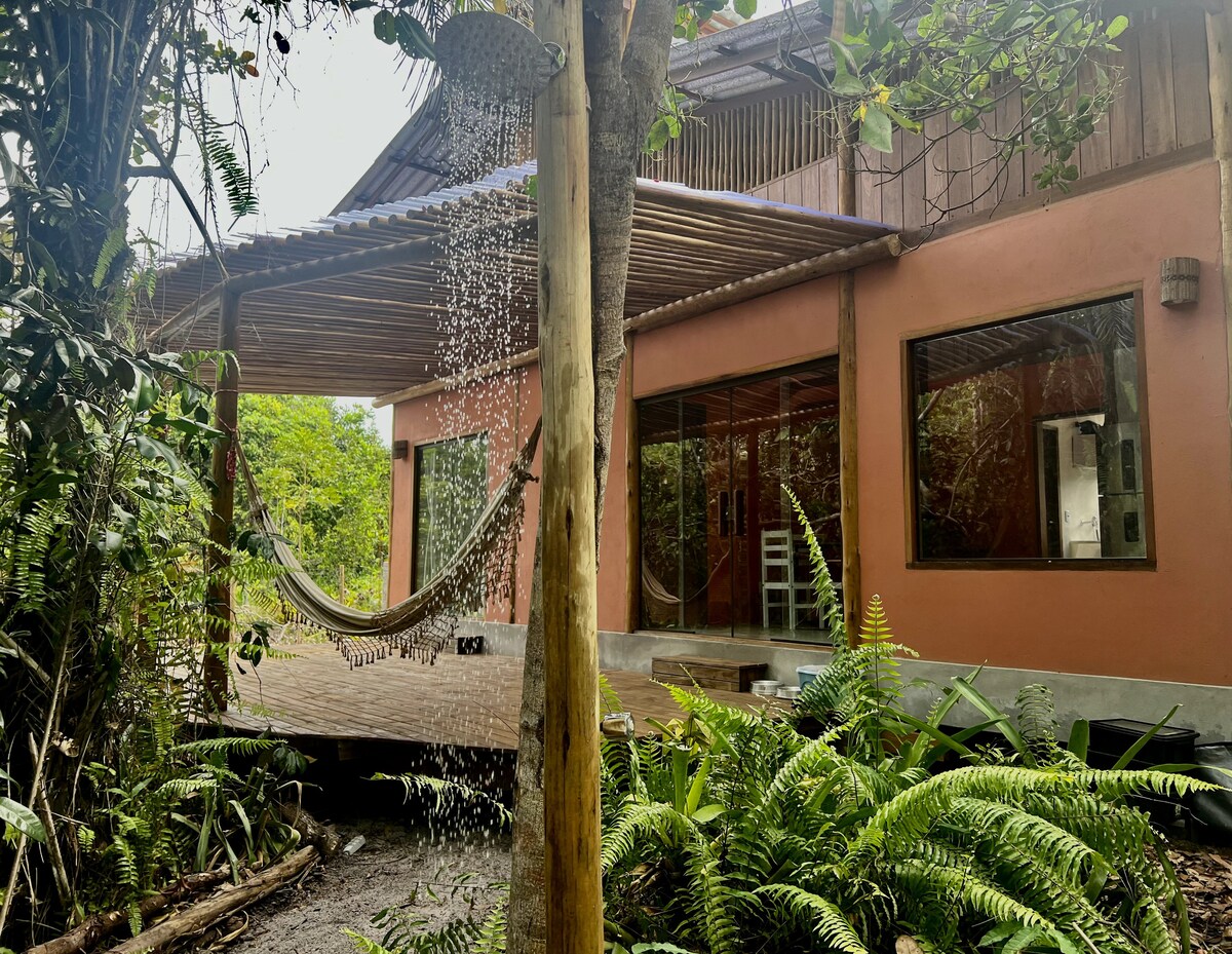 @nomadsitacare| Pahintulutan ang iyong sarili na mabigla sa hindi malilimutang pamamalagi Welcome sa Casa Nomads na nasa tahimik na kapitbahayan na 2 km lang mula sa downtown ng Itacaré. Napapalibutan ito ng mga puno ng niyog at nasa harap ng simula ng trail papunta sa sikat na Prainha. Bahay na may inspirasyong arkitektura, na may DNA Nomads: magiliw, sopistikado at konektado sa kalikasan. May pool para sa mga bata at nasa hustong gulang, gourmet area, at barbecue kaya perpektong tuluyan ito para sa mga grupong gustong magkaroon ng mga espesyal na araw.