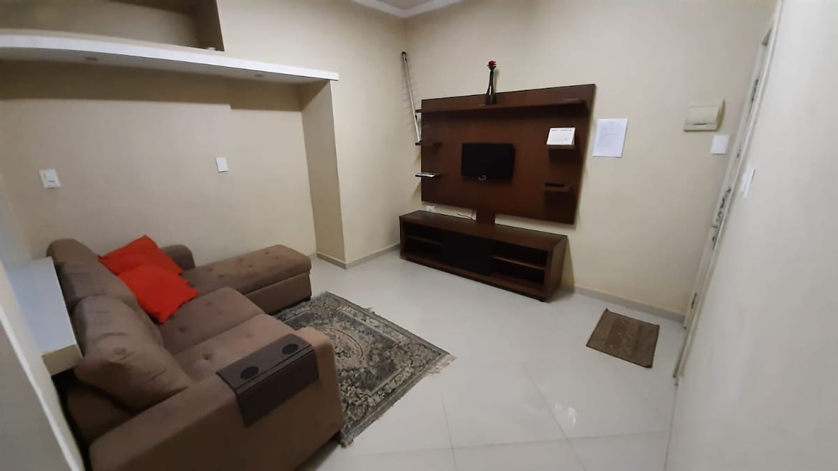 Yakapin ang pagiging simple sa tahimik at maayos na lugar na ito. Upang magpahinga sa isang kape sa gitna ng araw o magrelaks pagkatapos ng mahabang araw ng trabaho, ang Kitenetes sa Amitaba condominium ay nakakatugon sa iyong mga pangangailangan sa isang panloob na patyo na may isang indibidwal na lugar ng serbisyo. Kumpletong kusina at kama at lino sa paliguan.