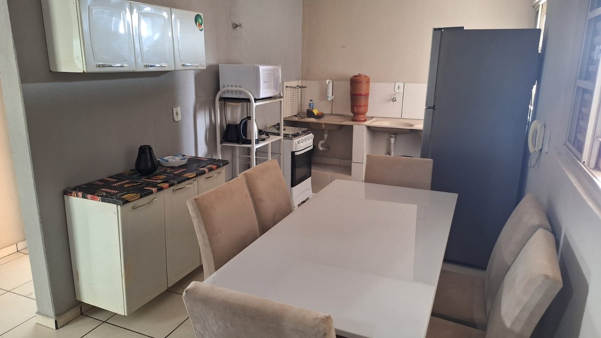 Kaakit-akit at komportableng bahay na 5 minuto lang mula sa downtown Barra do Garças! May dalawang kuwartong may air‑con ang property, komportableng sala na may sofa, bentilador, at 50" TV, at may Wi‑Fi at libreng access sa mga streaming service. May kumpletong kusina, labahan, at malaking garahe rin ang bahay. Ang mga kuwarto ay komportable at functional, perpekto para sa mga pamilya at business traveler, na tinitiyak ang kaginhawaan, pagiging praktikal at isang mahusay na lokasyon.