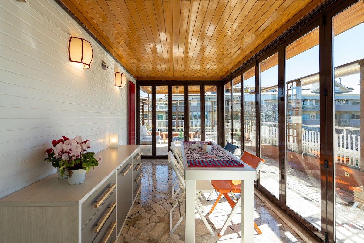 Panoramic penthouse, ilang hakbang lamang mula sa metro A