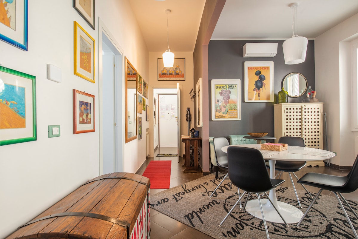 Eksklusibong penthouse sa gitna ng Rome na may malaking pribadong terrace at magagandang tanawin ng Colosseum at San Giovanni. Matatagpuan sa ika‑6 na palapag na may elevator, maliwanag at tahimik, sa masiglang distrito ng Monti. Dalawang kuwarto, sala, study, kumpletong kusina, mabilis na Wi‑Fi, heating, at air conditioning. Ilang hakbang lang mula sa mga pangunahing landmark, at malapit sa metro, bus, at mga tindahan. Perpekto para sa mga mag‑asawa, pamilya, o magkakaibigan na naghahanap ng kaginhawaan, kapanatagan, at mga tanawin ng Eternal City na hindi malilimutan.