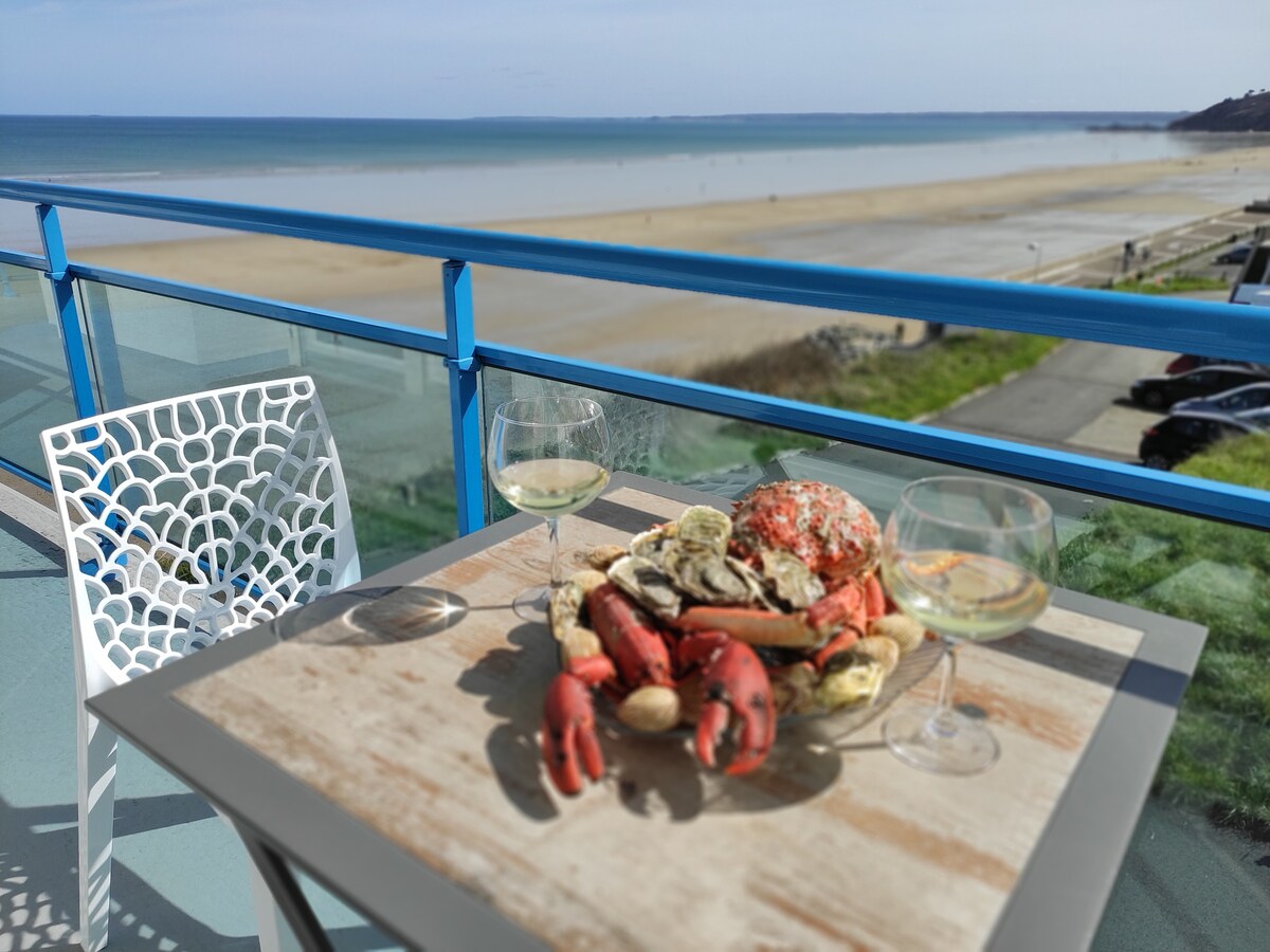 Ikaw ay charmed sa pamamagitan ng aming napaka - maliwanag loft ng 60 m2 na nag - aalok ng isang magandang tanawin ng dagat. Magkakaroon ka lamang ng 100 m na gagawin upang matuklasan ang napakalaking beach ng Caroual at kunin ang mga trail ng GR34. Cap d 'Erquy, Cap Fréhel ..... Hindi angkop ang listing para sa mga sanggol at batang wala pang 10 taong gulang. Maingat na pinalamutian ang mga linen na ibinigay at mga higaan na ginawa pagdating. "Pangalawang pagtulog sa kahilingan na may surcharge na 10 Euros bawat tao at karagdagang gabi.