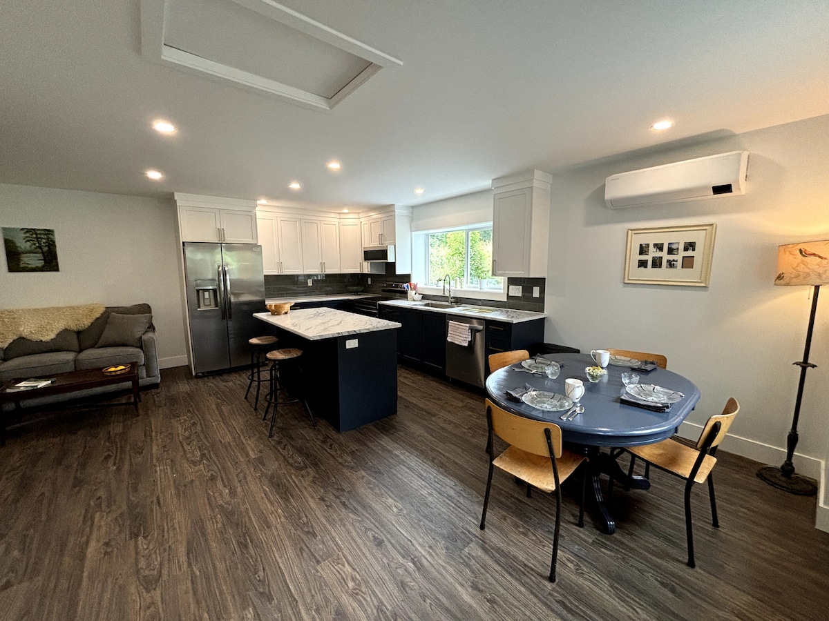 Nakakatuwang komportableng suite na may 1 kuwarto, kusina, at 3 banyo na may libreng wifi at paradahan. Malilinis at maayos ito at pinagtuunan ng pansin ang mga detalye. Ilang hakbang lang kami mula sa Somass River at Riverbend Cafe. Malapit lang sa Sproat Lake at 3km mula sa Clutesi Haven Marina. Maraming trail para sa pagha-hike/mountain biking na may magagandang tanawin tulad ng Hole in the Wall. Mahigit isang oras na kaming nasa biyahe papunta sa magandang Long Beach Tofino at kanlurang baybayin ng Vancouver Island