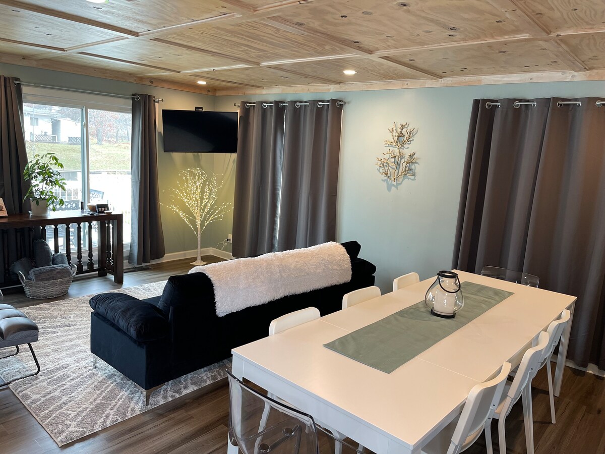 You're not staying at grandma's cottage here! Our neat and tidy cottage is full of updates & space for your whole family, friends and pets. 2 private bedrooms & space to pack in the kiddos up in the loft. We're just a brief walk away from 1 of 8 private lake accesses you're welcome to use! Our outdoor space is perfectly set up for vacation and has a BRAND NEW HOT TUB! Enjoy your coffee on the front deck, grill on the back patio & sit around the bon fire after dark in the privacy fenced yard.