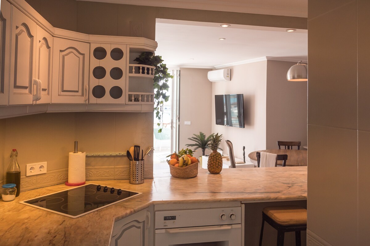 Magandang apartment na may pambihirang lokasyon. Mula sa terrace nito, masisiyahan ka sa magagandang tanawin ng karagatan. Dahil sa lokasyon nito sa pagitan ng daungan at beach, mainam na lugar ito para sa mga pamilyang gustong masiyahan sa kanilang mga bakasyon habang nasa sentro. Ang apartment ay may tatlong malalaking silid - tulugan, maluwag at maliwanag na sala - silid - kainan, bago at kumpletong kusina at dalawang inayos na banyo. Mahigpit na ipinagbabawal ang mga party sa buong gusali. Hinihiling namin na igalang mo ang kapayapaan at katahimikan ng mga kapitbahay