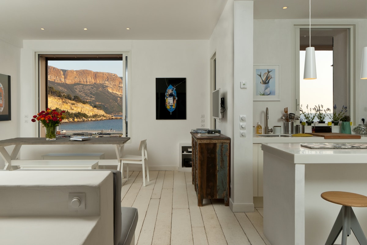 Napakagandang apartment na 42 m2 na may terrace sa daungan ng Cassis , ang sardinette ay may natatanging tanawin ng dagat at Cap Canaille. Ganap na na - renovate ng interior designer na Premium na mga amenidad at lahat ng ninanais na kaginhawaan (air conditioning, dishwasher, laundry dryer, microwave , nespresso machine). 5 minutong lakad ang maliit na setting na ito mula sa mga beach at malapit sa mga sikat na calanque ng Cassis.