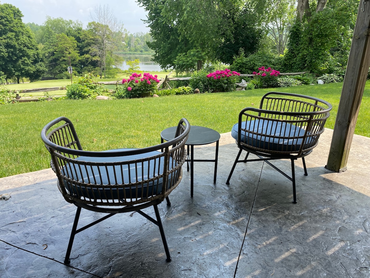 Ipinagmamalaki ng tahimik at maaliwalas na apartment na ito, 5 minuto mula sa downtown, 7 minuto mula sa ospital at 3 minuto mula sa Trent U., at magandang tanawin ng pribadong golf course. Ang ganap na inayos na sala na may fireplace ay bubukas sa patyo na tinatanaw ang golf course kung saan maaari kang magrelaks at kumuha ng mga tanawin habang humihigop ng iyong kape sa umaga o alak sa gabi. Nagtatampok ang apt. ng kusinang kumpleto sa kagamitan na may lahat ng kailangan mo para magluto ng sarili mong pagkain. Nagtatampok ang maluwag na kuwarto ng queen - sized bed.