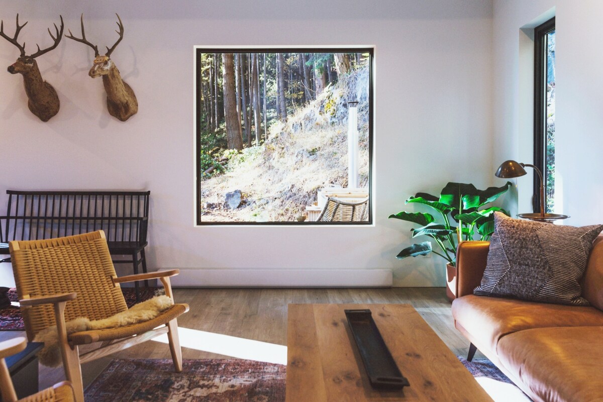The Trail House is a perfect escape- a modern cabin set on the edge of a forest, overlooking the ocean. The Trail House is more than just your home base to explore, it's an invitation to create space from your everyday life & reconnect with nature. A private spa retreat awaits. Soak in a wood-burning hot tub, unwind in a sauna & cold plunge shower, & relax by the fire. Thoughtfully designed & close to Bowen’s many beaches & hiking trails, The Trail House balances tranquility, style, & comfort.