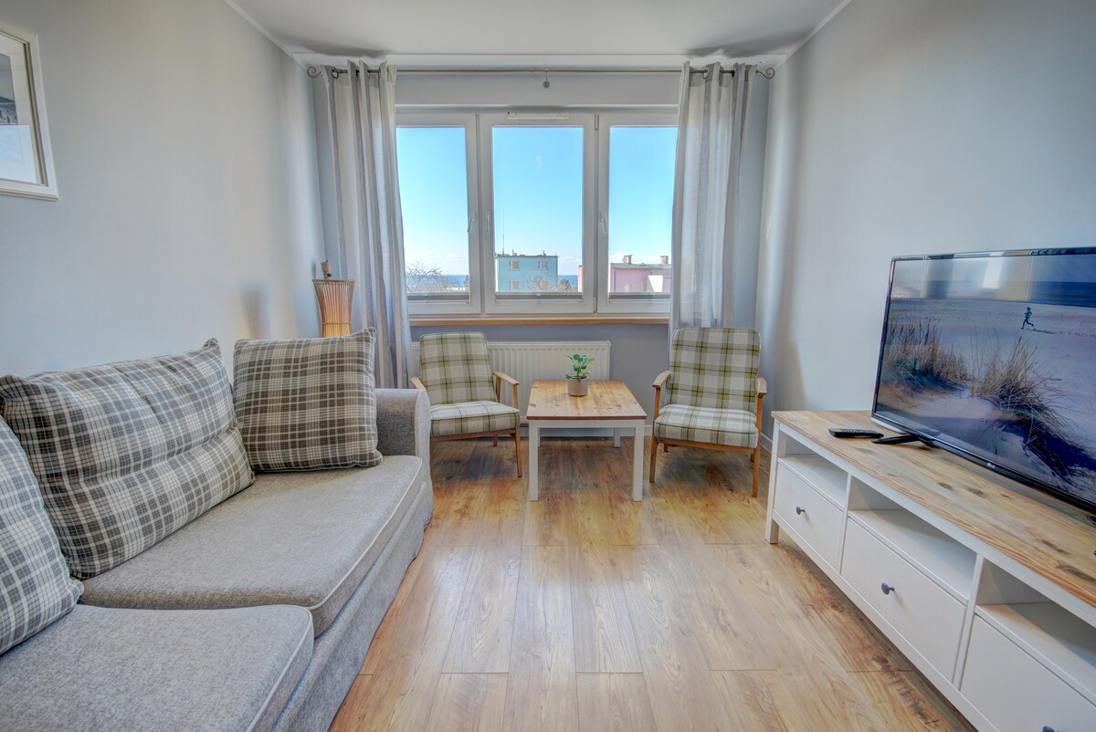 Inihahandog namin sa iyo ang komportableng apartment na pinalamutian ng estilo sa tabing - dagat. Inaanyayahan ka ng mainit at kaaya - ayang interior na may magagandang accessory na pumasok at magrelaks. Lalo na matutuwa ang mga pamilyang may mga bata sa malaking lugar at 2 silid - tulugan na may komportableng higaan. Ang Bałtyk IV Apartment ay isang mainam na opsyon para sa mga pangmatagalang bakasyunan. Matatagpuan ito sa unang palapag, na may lawak na 57 m2, na binubuo ng 2 silid - tulugan, sala, kusina at banyo. Ang apartment ay may pagkakalantad sa timog.