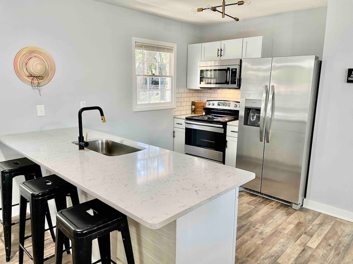 Maliwanag at maaliwalas na may bukas na plano sa sahig, ipinagmamalaki ng kakaibang cottage na ito ang mga natatanging feature at walang hirap na estilo sa 900 sq. ft. Ilang minuto lang ang layo ng naka - istilong bagong ayos na tuluyan na ito mula sa Parris Island, makasaysayang downtown Beaufort, at 20 minutong biyahe papunta sa Hunting Island - ito ang perpektong Lowcountry retreat. Lisensya ng Port Royal, SC # 12106