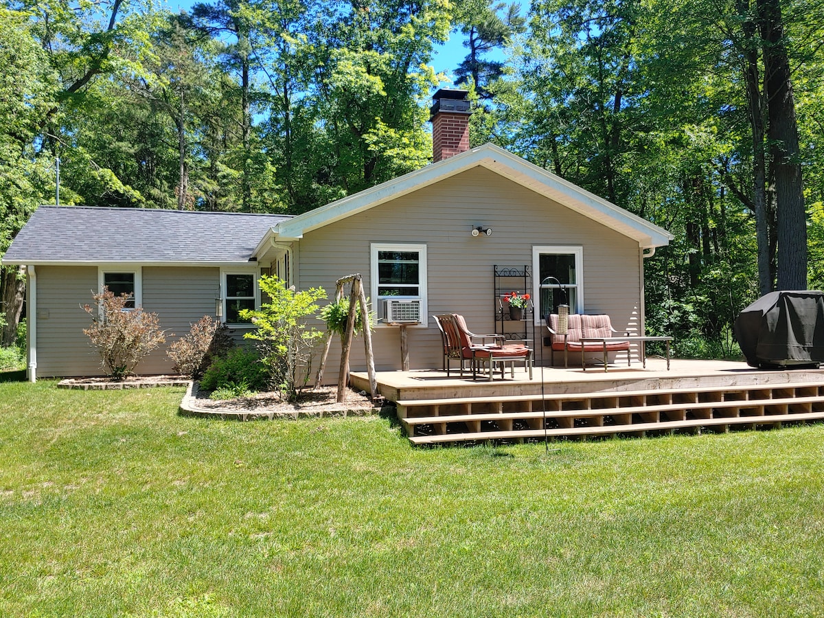 Beautiful view and sand beach on Lake Michigan, completely private, surrounded by mature white pine trees and cedar trees. The spacious home is fully equipped with an "eat in" kitchen, dining room, and living room entertainment space, den with a see-through log-fired fireplace, screened-in porch to accommodate additional eating space, large outdoor deck with grill and fire pit. A canoe and a row boat are available for the boating enthusiast, with life jackets and other floating devices.