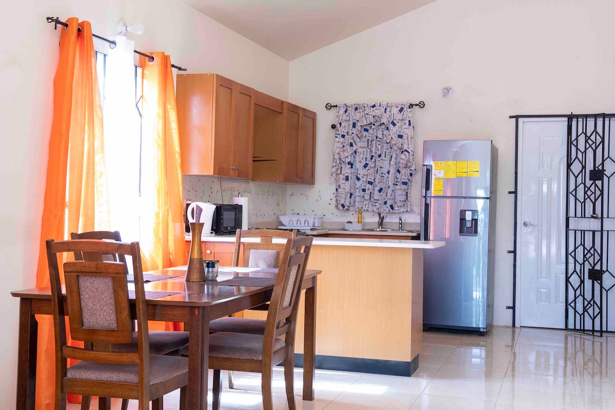 Maligayang pagdating sa iyong pangarap na bakasyon! Maghandang pumasok sa isang kamangha - manghang bagong gusali na may 2 silid - tulugan, 1 - banyong tuluyan, na iniangkop na idinisenyo para sa tahimik na bakasyunan na talagang tuluyan na malayo sa tahanan. Matatagpuan sa isang ligtas na 24 na oras na komunidad na may gate, ang oasis na ito ang iyong personal na bahagi ng paraiso! Mga AC unit, mainit na tubig, at lahat ng pangunahing kailangan para maging komportable. 15 minuto mula sa beach. Plaza, Malls, mga tindahan at supermarket Mga Restawran - KFC, Chinese, Pizza, Island Grill, Juici beef Cinema, Arcade, skating at Club