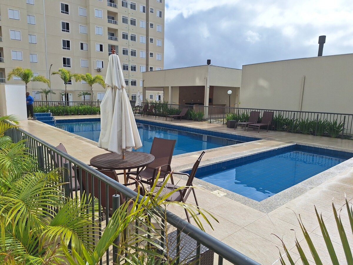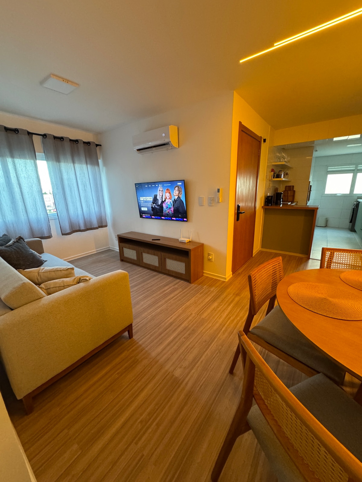 Magandang apartment, lahat ng bagong kagamitan. - Mga kuwartong may mga tagahanga na kontrolado nang malayuan; - mga screen ng bintana; - Machine washer at dry, microwave, refrigerator, air conditioning; - maibabalik na sofa sa sala, na may 50 pulgadang TV; - banyo na may kahon, shower at locker na may lababo; - Mayroon itong 1 espasyo para sa sasakyan; - Mayroon itong mga swimming pool (mga bata at matatanda); - Churrasqueiras; - 2 buong party room; akademya ng mobility; - Pracheinha; sports court; Chimarrão na kanayunan; - 24 na oras na gatehouse.