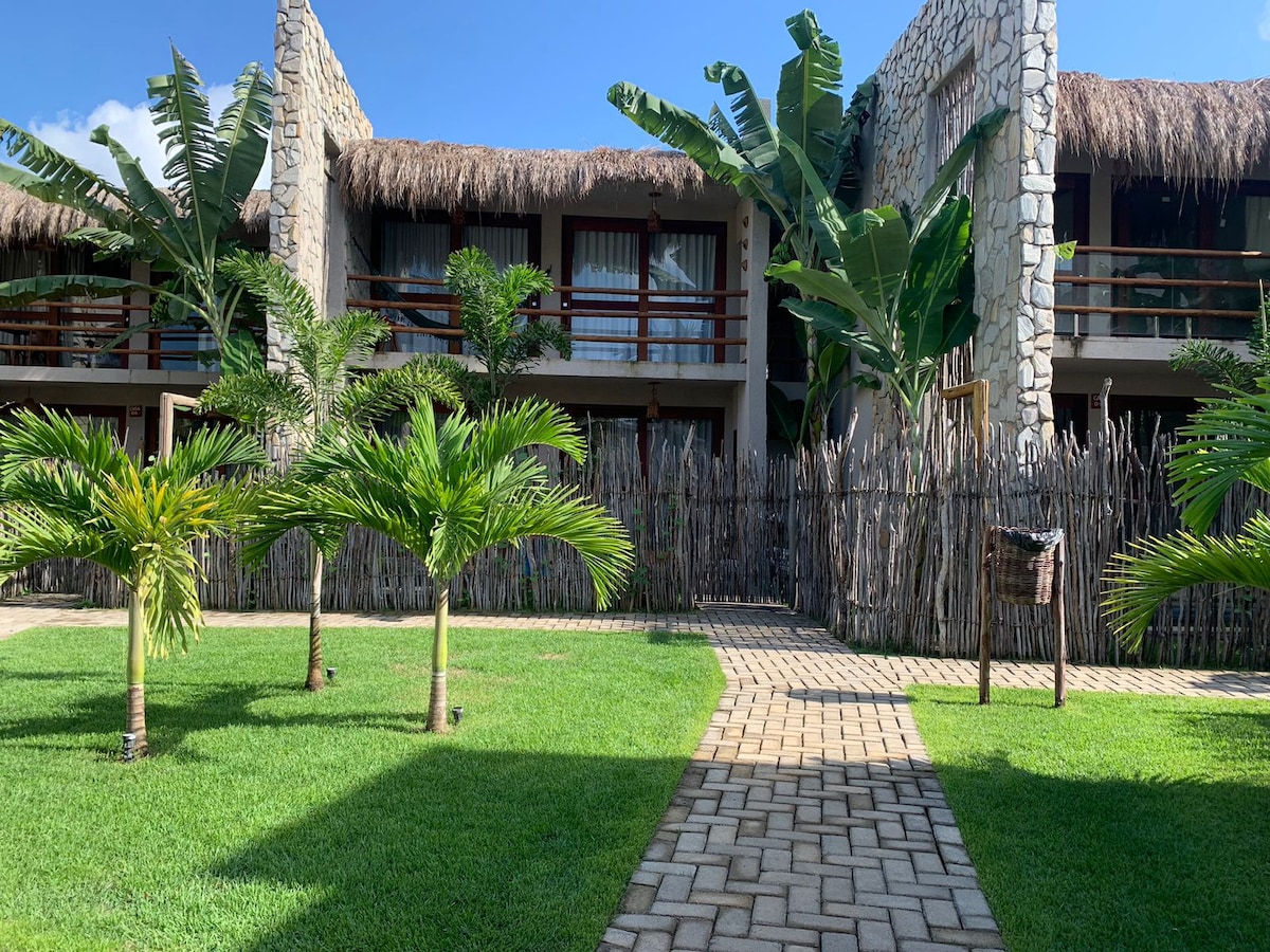 Natatanging lugar, na may sariling estilo, na matatagpuan 250 metro mula sa beach (Manatee Preservation Sanctuary). Tamang - tama para sa mga naghahanap ng katahimikan sa isang paradisiacal, ligtas at di malilimutang lugar. Nasa loob ng condo ang bangalo na may paradahan at swimming pool. Mayroon kaming queen bed, aparador, bagong linen, kumot, tuwalya sa paliguan, upuan sa beach, mesa, cooller at beach tent. Mainit na paliguan na may sariwang tubig at hair dryer. Malapit sa mga prestihiyosong restawran at iba 't ibang tour.