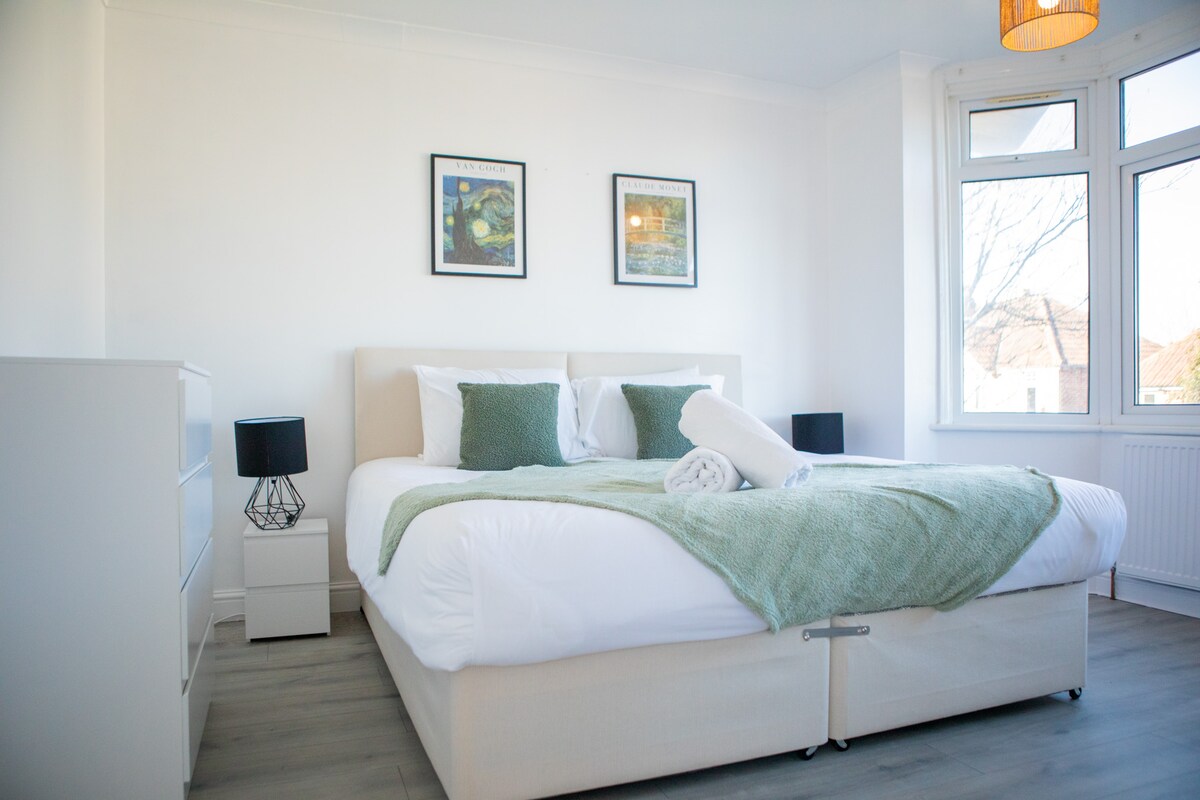 Maligayang pagdating sa iyong perpektong bakasyunan sa Southampton! May king size na higaan na naghihintay sa iyo na may dobleng built in na mga aparador sa imbakan. Nagtatampok ang double room ng 32" TV para sa iyong libangan, at katulad na maginhawang built - in na mga aparador ng imbakan para mapanatiling organisado ang iyong mga gamit. Nangangahulugan ang isang solong higaan at sofa bed sa ibaba ng sahig na puwedeng mamalagi ang lahat. Pinakamaganda sa lahat, malapit ang aming lokasyon sa Southampton Central, sa cruise terminal at sa unibersidad ng Southampton, na tinitiyak ang madaling access sa anumang bahagi na kailangan mo sa masiglang sentro ng lungsod.