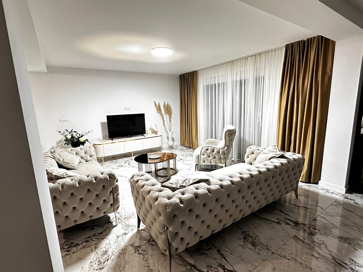 Ang modernong tuluyan na ito ay ang perpektong pagpipilian para sa mga bumibiyahe nang magkakasama. 50 metro lang mula sa apartment ang "Apfel Arena" na may mga pasilidad para sa isports, kultura, at kalusugan. Ang apartment ay mararangyang nilagyan ng whit jacuzzi para sa 5 at finland sauna. Sa terrace ay may pribadong pool, mga deckchair para sa pagpapahinga at gas grill para sa perpektong hapunan, na may tanawin ng bundok ng Biokovo