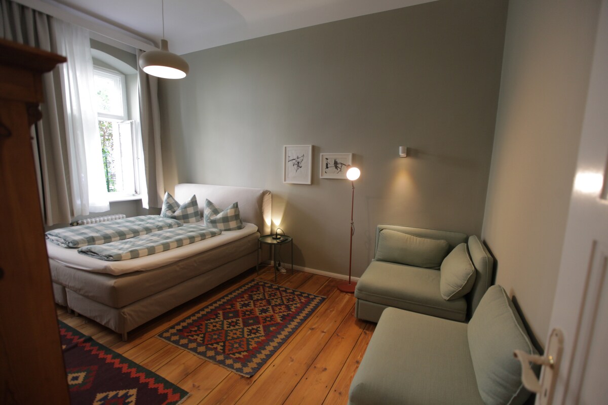Matatagpuan ang aking apartment sa naka - istilong kapitbahayan ng "Prenzlauer Berg". Ang apartment ay nasa ika -1 palapag (Amer. 2nd), na nakaharap sa tahimik na panloob na bakuran, na may dalawang malalaking French window. Nagtatampok ang view ng restored factory at mga studio. Ang studio area ay 40 square meters ang laki, naglalaman ng double bed, mini kitchen na naglalaman ng lahat para magpalamig at magluto. Ang studio ay may lucid corridor at marangyang banyo na naglalaman ng shower at bathtub at underfloor heathing. Ang buong apartment ay 60 square meters ang laki at tastefully furnished, paghahalo ng mga moderno at klasikong tala ng disenyo. Available ang mabilis na internet. Ang kapitbahayan ay mahusay na nagustuhan at isa sa mga trendiest sa Berlin. Nasa agarang paligid ang mga panaderya, coffee shop, matutuluyang bisikleta, pampublikong parke, at supermarket. Ang kilalang "Mauerpark" sa buong mundo kasama ang maraming atraksyon at merkado ng pagtakas (sa katapusan ng linggo) ay 15 minuto sa pamamagitan ng bisikleta. Gayunpaman, tahimik ang kalye, na matatagpuan sa pagitan ng dalawang malalaking boulevard, na may kamangha - manghang pampublikong transportasyon papunta sa mga ariport pati na rin ang iba pang gitnang landmark, at quarters, tulad ng Alexanderplatz, East Side Gallery, Mitte, Friedrichshain atbp. Maaari kang maglakad papunta sa Kastanienallee und Alte Schönhauser Allee, dalawang hip shopping boulevards. Maraming kabataan ang nakatira rito, sigurado akong magugustuhan mo ito!