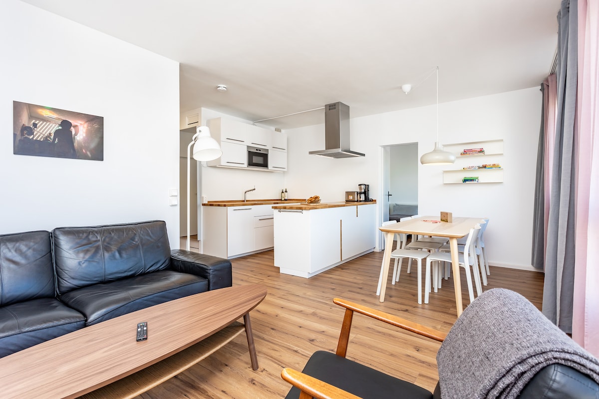 Ang aming Zweifach Minilofts ay perpekto para sa hanggang 4 na tao. Sa loob ng kanilang 40 sqm ay may hiwalay na silid - tulugan na may queen sized bed (160 x 200 cm), sala na may dalawang sofa na ginagawang single bed, bukas na kusina na may malaking mesa para sa pagtatrabaho o kainan, at ensuite bathroom na may shower. Ang lahat ng Zweifach Minilofts ay may malalaking bintana na may mga tanawin ng hilaga sa parke, o sa kabila ng plaza ng lungsod sa silangan.