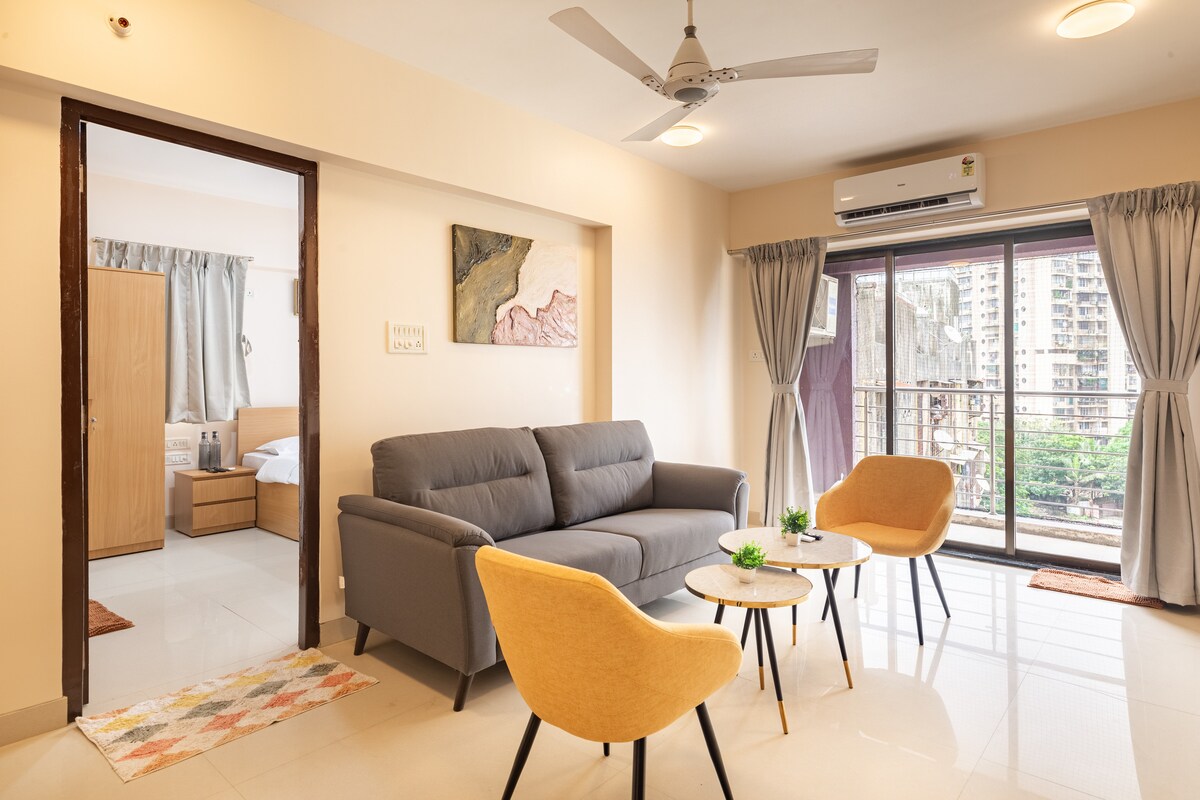 Malapit sa lahat ang iyong pamilya kapag namalagi ka sa sentral na lugar na ito. Ito ay isang 1 Silid-tulugan, Sala, Kusina na kumpleto sa gamit na Apartment malapit sa Andheri Subway. May mga AC sa Silid - tulugan at Sala. Mayroong 2 buong banyo at kumpleto sa gamit ang kusina. Gustong - gusto naming paglingkuran ang aming mga bisita sa kanilang pinakamataas na antas ng kaginhawaan. Ang aming Apartment ay may 24 na oras na Caretaker na available sa tawag. Nagbibigay kami ng mga sobrang komportableng kutson.