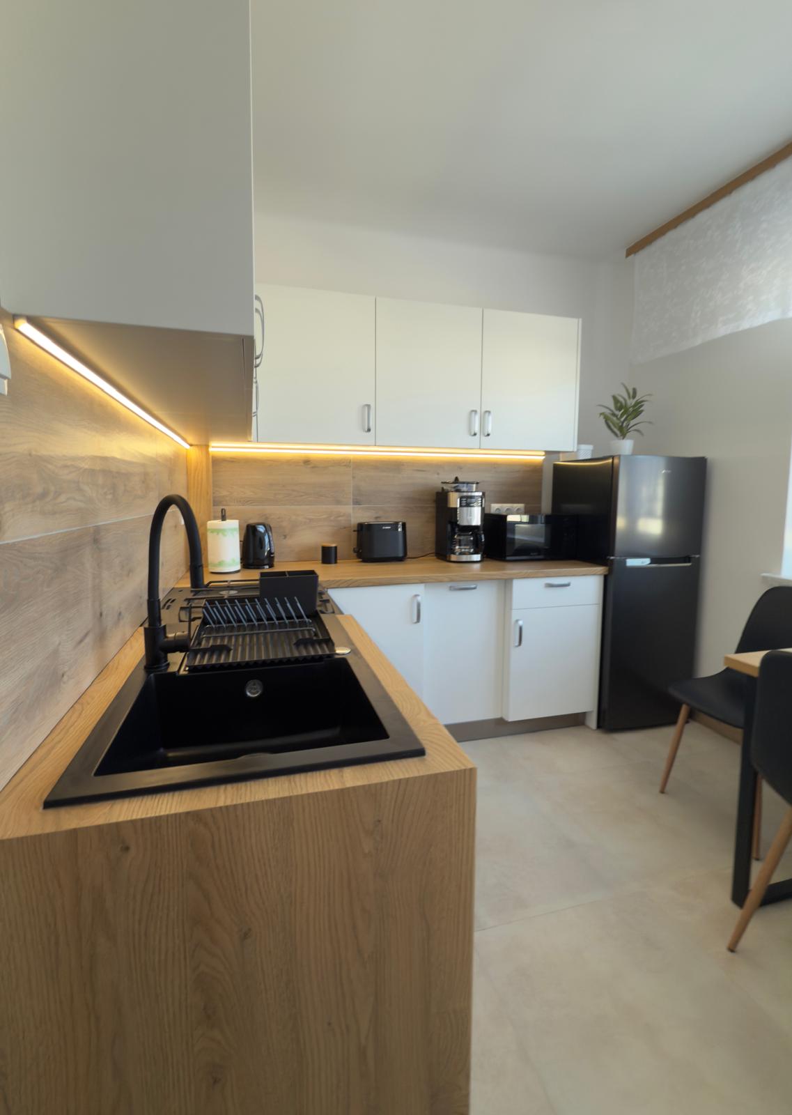 Nag - aalok ang Deluxe apartment ng kaginhawaan at natatanging dekorasyon. Binubuo ito ng dalawang magkakahiwalay na kuwarto, na nagbibigay ng mas maraming espasyo at kaginhawaan. Nilagyan ito ng TV, komportableng mesa, kettle, at komportableng banyo na may shower at hanay ng mga tuwalya. Available ang libreng Wi - Fi sa buong property. Bukod pa rito, may kitchenette ang apartment, na nagbibigay sa mga bisita ng kaginhawaan sa paghahanda ng sarili nilang pagkain. May kasamang libreng paradahan.