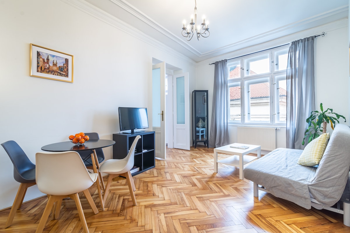 Masiyahan sa pamamalagi sa aking magandang tuluyan sa Jugent Stil na itinayo noong 1890s ngunit kamakailan ay na - renovate sa lahat ng mga modernong amenidad na maaari mong hilingin kasama ang built - in na Aircondition sa lahat ng kuwarto. Magandang dekorasyon na apartment na may dalawang silid - tulugan na may makasaysayang mataas na kisame na pinalamutian ng mga dekorasyon na stucco molding, mid - century at modernong muwebles sa buong lugar, banyo na may malaking bathtub at hiwalay na toilet. Ang perpektong lugar na matutuluyan habang nasa Prague para sa weekend trip, business trip, o mas matatagal na pamamalagi.