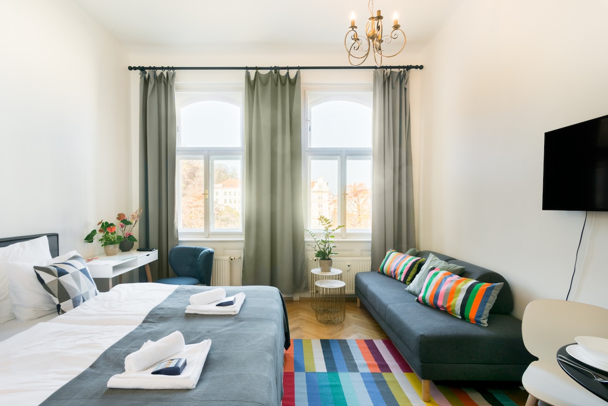 Your perfect place to stay in Prague for one or two people. From the minute you walk into our classic building built in 1982, the history is almost palatable. Refurbished with all the luxuries of modern life. From a fully stocked kitchen to the luscious hot towel warmers will make you feel right at home. We know the importance of a great night's sleep. Enjoy our comfortable orthopedic beds and pillows. See you soon.